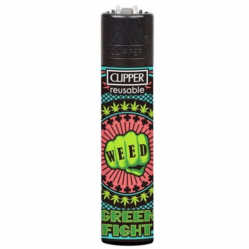 Så er det tid til at tage kampen op med denne Green Fight Clipper lighter! Nu er du klar til at tænde op for en grønnere verden, og kæmpe for legalisering af cannabis, samtidig at du gør det på en grøn og miljøvenlig måde! Lighteren kommer nemlig med et pålideligt flintsystem der hurtigt og billigt kan udskiftes, så du ikke skal købe en ny lighter når delene går i stykker. Derudover er den påfyldt med Clipper’s egen højkvalitets isobutan gas, så du altid kan stole på at denne lighter vil tænde din bong eller pibe med en pålidelig flamme hver eneste gang. Med en knytnæve der er klar til at kæmpe for sagen, er denne lighter mere end bare et praktisk redskab til at tænde din yndlingsplante. Det er et statement om din kampgejst og tro på en bedre fremtid, hvor cannabis er lovligt og accepteret. Men det er ikke kun designet, der gør den til en unik og vigtig tilføjelse til din samling, men den praktiske boost funktion af flammen der kommer når man holder den vandret, gør den særdeles praktisk at tænde op med. Så er du klar til at tage kampen op? Med Clipper Green Fight er du snart rustet til at tænde op for en bedre fremtid! God ryger og kamp!