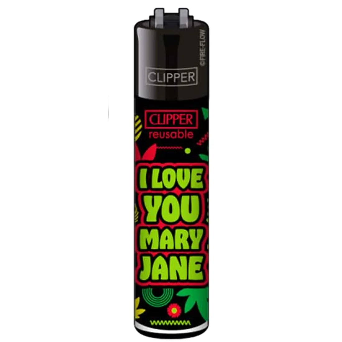 Her er en Clipper, der siger det ligeud: I LOVE YOU MARY JANE. Med et sort baggrund, grønne bogstaver og røde rammer får du en lighter, der både er sjov og oplagt til dig, der vil sende en kærlig hilsen til din yndlingsplante. Som altid med Clipper får du den klassiske kvalitet med rund form, en stabil flamme, genopfyldning med gas og udskifteligt flintsystem. Og husk, holder du den skråt, aktiveres flammeboostet, lige det du har brug for til bong og pibe.