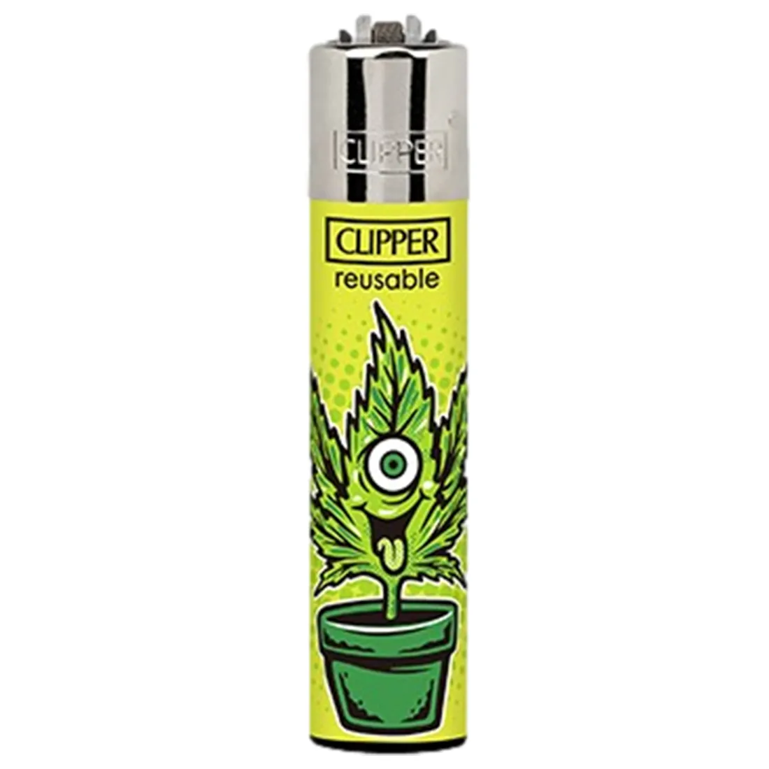 Med denne “Nice Edition” Clipper lighter får du en sjov og funky lighter, der med garanti vil få smilet frem hver gang du tænder op i bongen. Lighteren er nemlig prydet med et grønt hampblad, som har fået et ret unikt look – det har et stort, skørt øje og et fjollet smil, der gør det til en sand humørspreder. Selvfølgelig kommer den også med alle de praktiske funktioner, som fx. en pålidelig flamme, et genopfyldeligt gaskammer, som desuden kommer opfyldt med Clippers egen gas. Yderlig har den også et udskifteligt flintsystem, så du kan bruge den igen og igen, uden at skulle investere i en ny lighter hver gang.