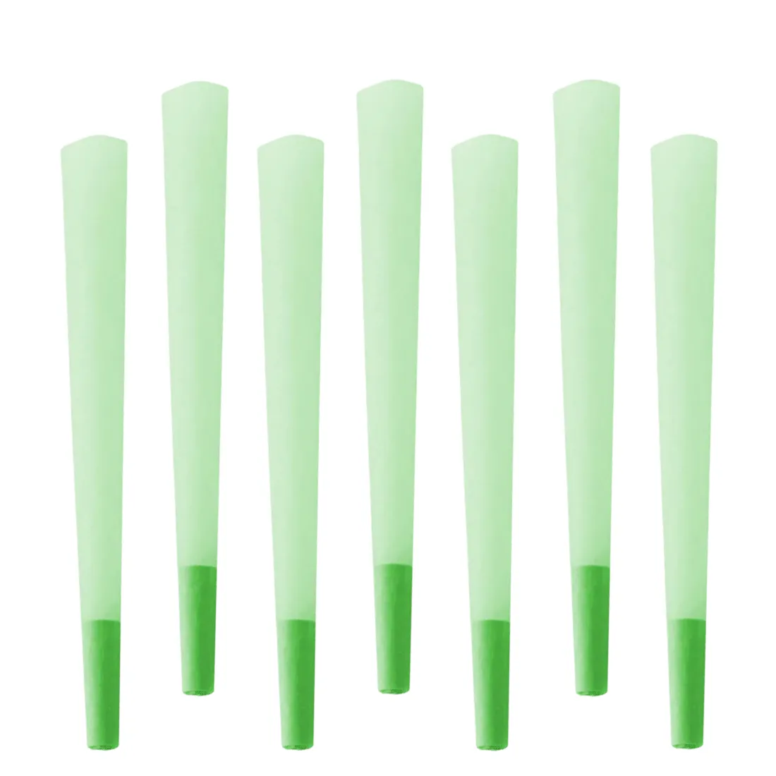 Med disse grønne færdigt lavede cones, får du de perfekte cones at mixe dine grønne urter eller mix op i. De bliver leveret i en kasse med 1000 stk. som gør at du har lager nok til lidt tid, og med den festlige grønne farve er det et oplagt valg at bruge når der skal ske noget nyt eller anderledes. De er fremstillet i en king size størrelse på 109 mm i længden, og kommer med et joint filter på 20 mm, der gør dem klar til at blive fyldt op med det samme. Så spar tiden på at rulle selv, og køb disse festlige grønne cones, så du kan få en god og total grøn ryger!