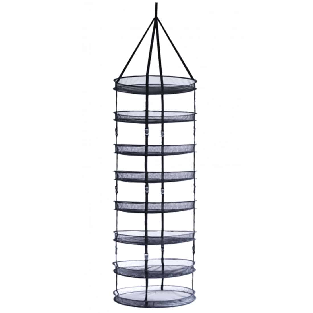Med dette foldbare tørrenet fra DiamondBox, kan du nemt klare tørring af forkellige planter og frugter. Denne model kommer med åbne sider og med 8 lag i alt, og har en diameter på 60 cm, som giver tilstrækkeligt med plads til din tørring. Med den påmonteret velcrobåndslukning i toppen, gør at nettet nemt kan hænges op i alle grorum eller dyrkningsområder, som f.eks. i dit telt. Takket være den gode foldeteknik, kan det også nemt pakkes sammen og opbevares uden af optage unødvendig plads, når det ikke anvendes.