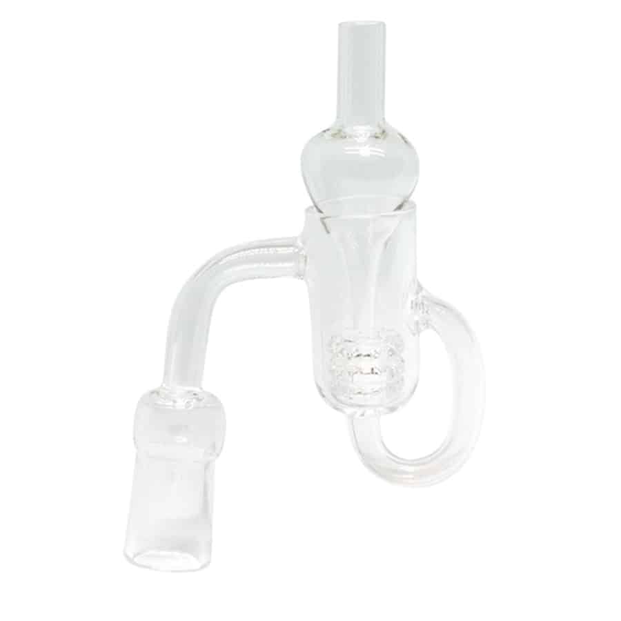 Denne olie banger er fremstillet af genbrugt borosilikat og kvartsglas, og ideel til at dabbe din olie på dit dabrig. Den kommer med en specielt og anderledes design, der giver røgen længere cirkulation, og på den måde skaber en lidt mildere røg end traditionelle bangere. Kommer med en hun / female tilslutning, der gør at den passer på dab rigs eller olie bonger med en Han tilslutning (Male) med en socket på 14,5 mm.