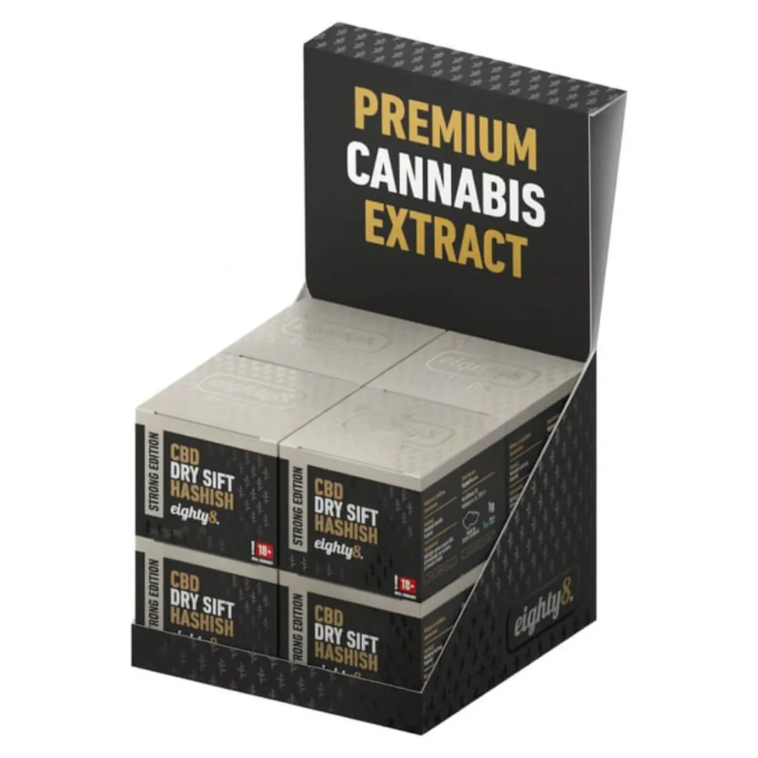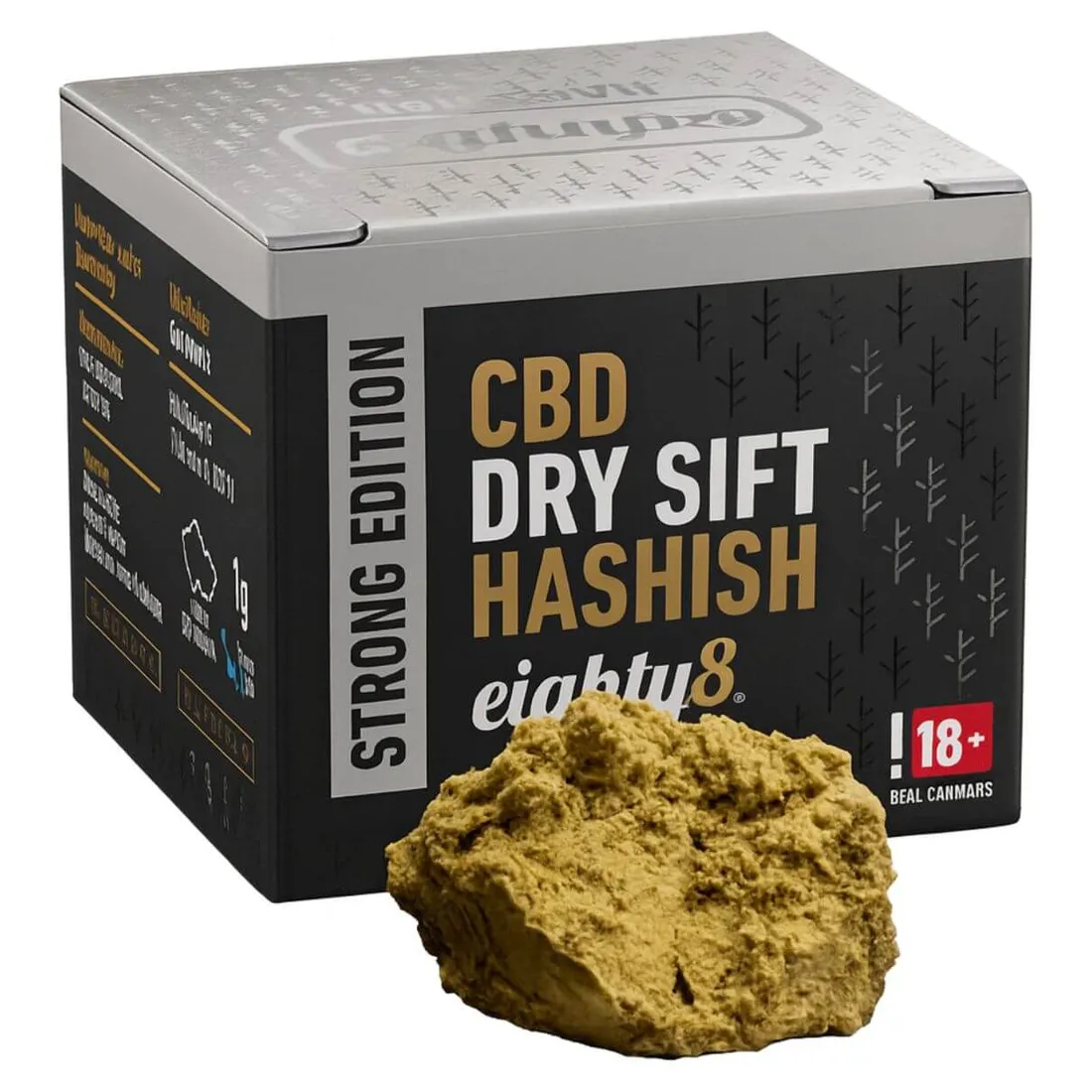 Dette Dry Sift Hashish på 14% CBD, er et stykke koncentrat fra Eighty8, lavet ved en klassisk dry sift proces, hvor der ikke bruges opløsningsmidler. Resultatet er en ren, pudderagtig og tør tekstur, der føles stabil i glasset, og som bevarer plantens naturlige præg. Produktet er lavet af EU hamp, og hver batch er testet af tredjeparts laboratorie.