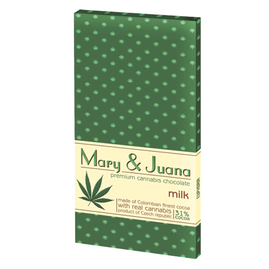 Denne Mary & Juana cannabis chokolade er fremstillet af lyst 32% kvalitets chokolade, og indeholder 10% cannabis frø. Pakken indeholder 95 gram i alt, og fås også med mørkt chokolade.