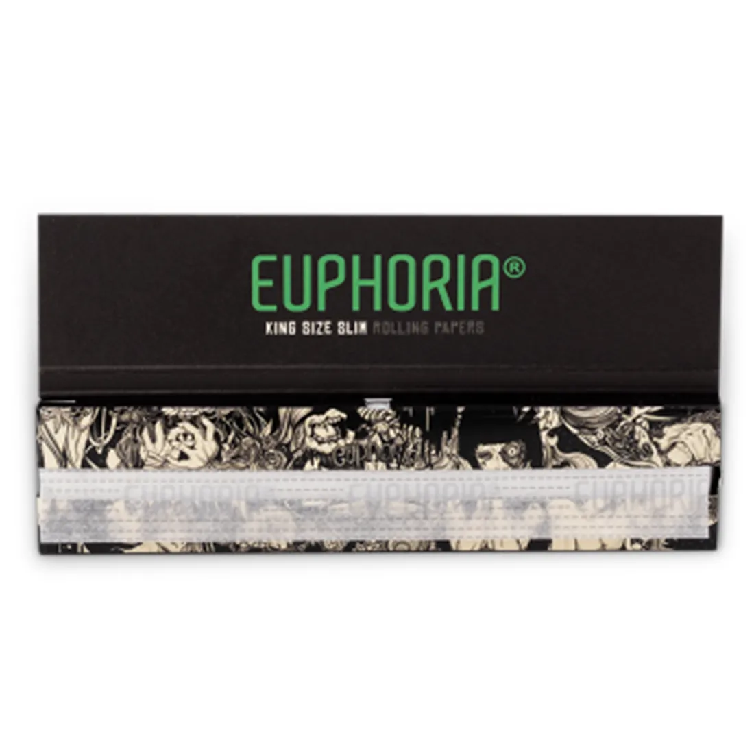 Dette Euphoria Mystical King Size Slim jointpapir er fremstillet af 100% træfibre, der sikrer en mere langsom og jævn forbrænding, og dermed en god og glat rygeoplevelse. Fremstillet af gode materialer, der er omhyggeligt fremstillet til at være så tynd og let som muligt, så du kan bevare den fulde smag fra din joint. Hver pakke indeholder 32 stk.