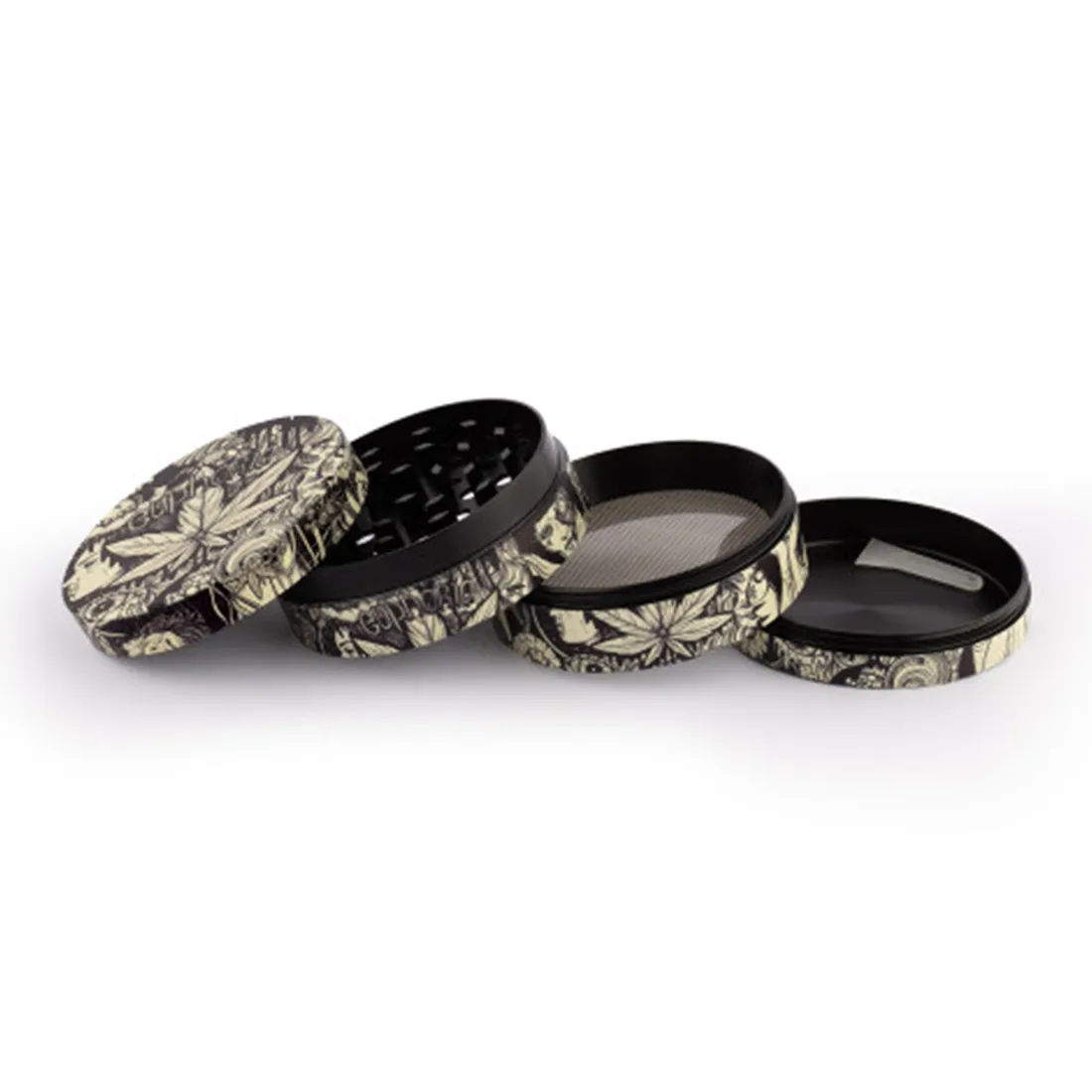 Hvis du leder efter en grinder, der kombinerer funktionalitet med et anderledes design, så er denne Mystical metal grinder fra Euphoria et godt valg. Den er lavet i solidt metal, og prydet med et unikt og mystisk design, og med skarpe diamantformede tænder, der sikrer et jævnt og effektiv grind af dine urter. Med sine fire rum og et rummeligt opsamlingskammer i bunden, kan du let opbevare dit overskydende ryst, der samtidig nemt kan opsamles med den medfølgende skraber. Det magnetiske låg sørger for at alle dele holdes sikkert sammen, og dens robuste konstruktion sikrer en god grinder der holder i mange år.