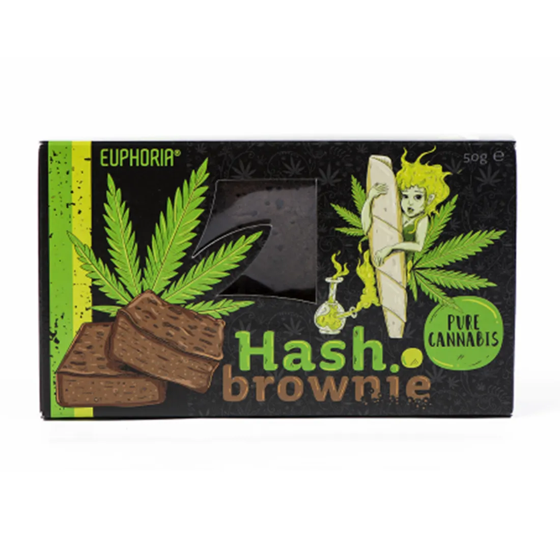 Euphoria Pure Cannabis Hash Brownies er en klassisk chokoladebrownie, med et twist af hamp. Den vejer 50 gram, og kombinerer en rig kakaosmag med hampemel og hampearoma, der giver en fyldig og anderledes smagsoplevelse. Konsistensen er blød og lækker, som fuldender den søde snack.Brownien er produceret i Tjekkiet med kvalitetsingredienser, og leveres i en praktisk portionsstørrelse. Perfekt som en lille snack til dig selv, som gimmick til festen, eller som en sjov gaveidé.Bemærk at produktet ikke indeholder THC eller CBD.