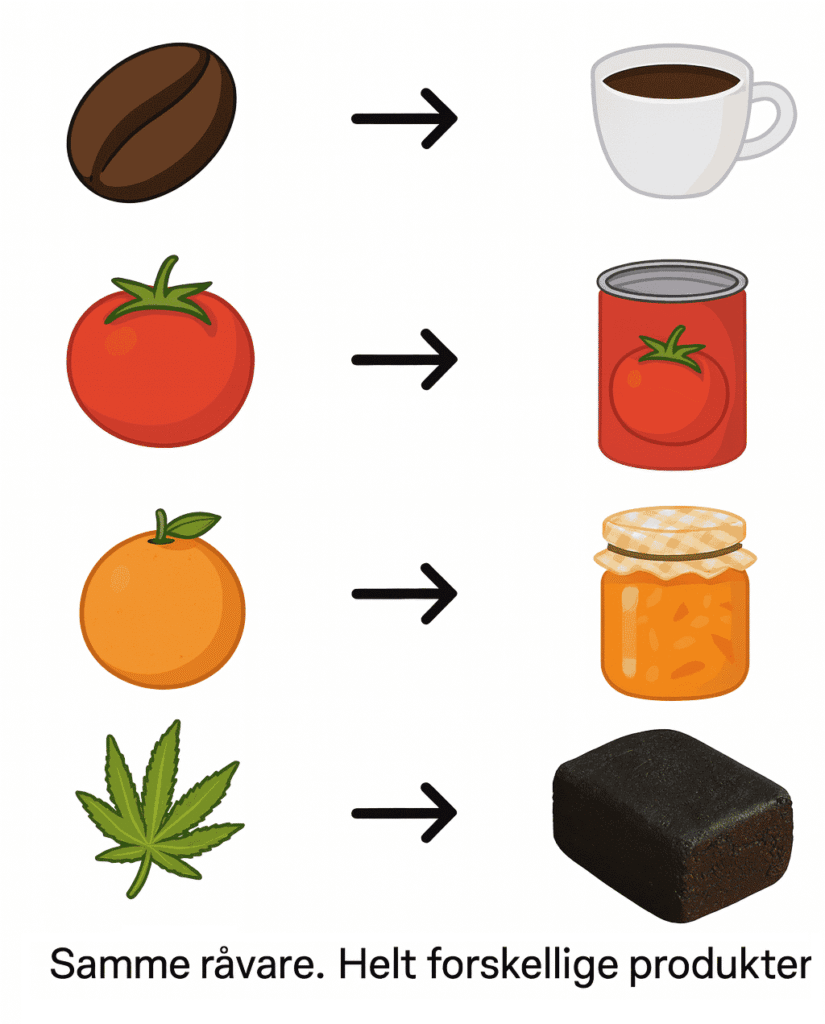 Det er nemlig ikke typen (hash/skunk), men produktionen, genetikken og metoden, der afgør styrken. Blandt befolkningen er der en bred forståelse af, at:
