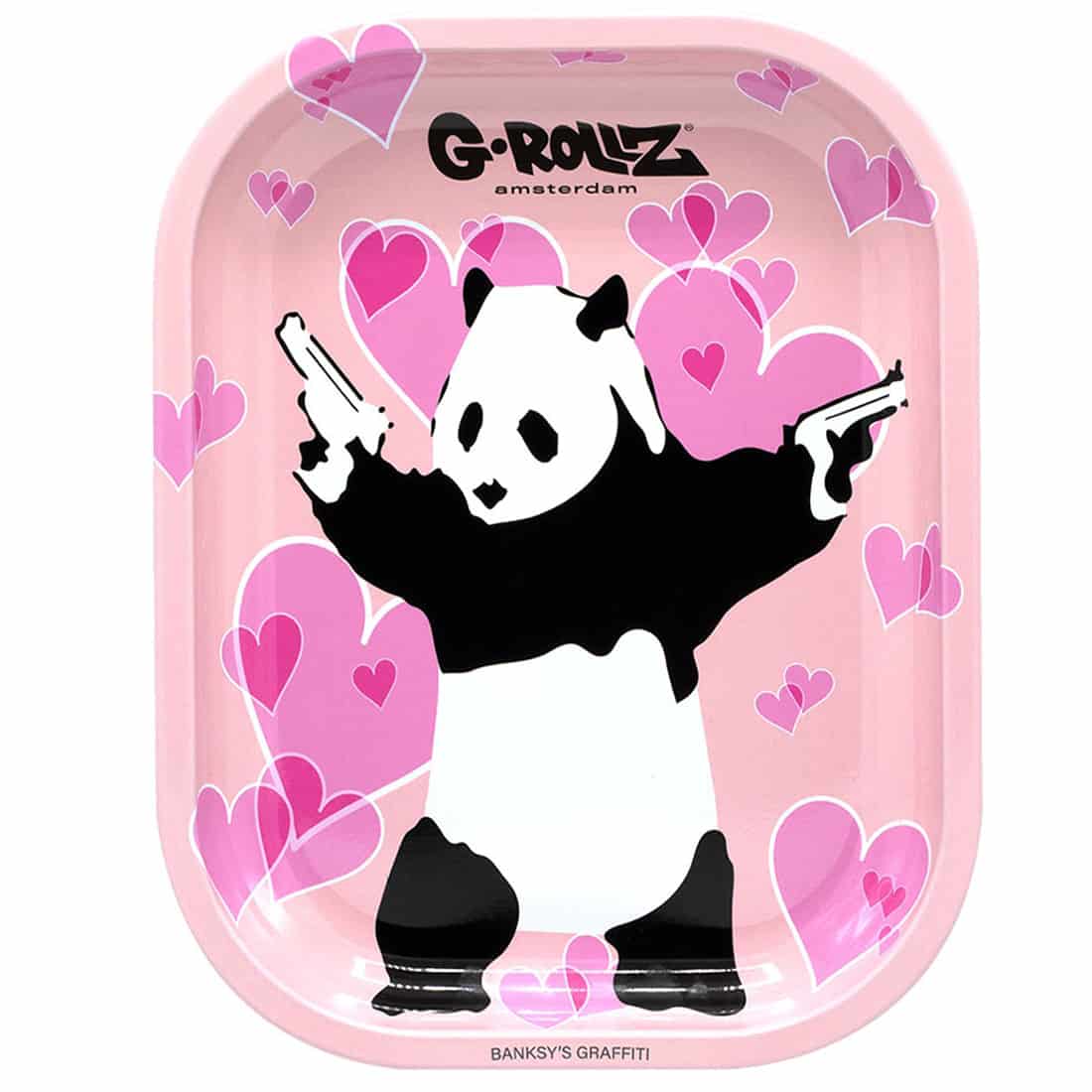 Denne G-Rollz Banksy’s Panda Gunnin Tray måler 140 x 180 mm, og er den perfekte lille bakke til din feminine rulle stil, hvor du kan nyde Banksys ikoniske panda-graffiti, mens du ruller din foretrukne plante. Bakken er lavet af slidstærkt metal, og har høje kanter på siden for at holde det mest nødvendige rulleudstyr på plads, og minimere spild af dit mix når du ruller. Med Banksy’s ikoniske pande-graffiti design vil dette tray helt sikkert skille sig ud i enhver samling, og være en fantastisk gave til enhver Banksy-fan eller kunstelsker.