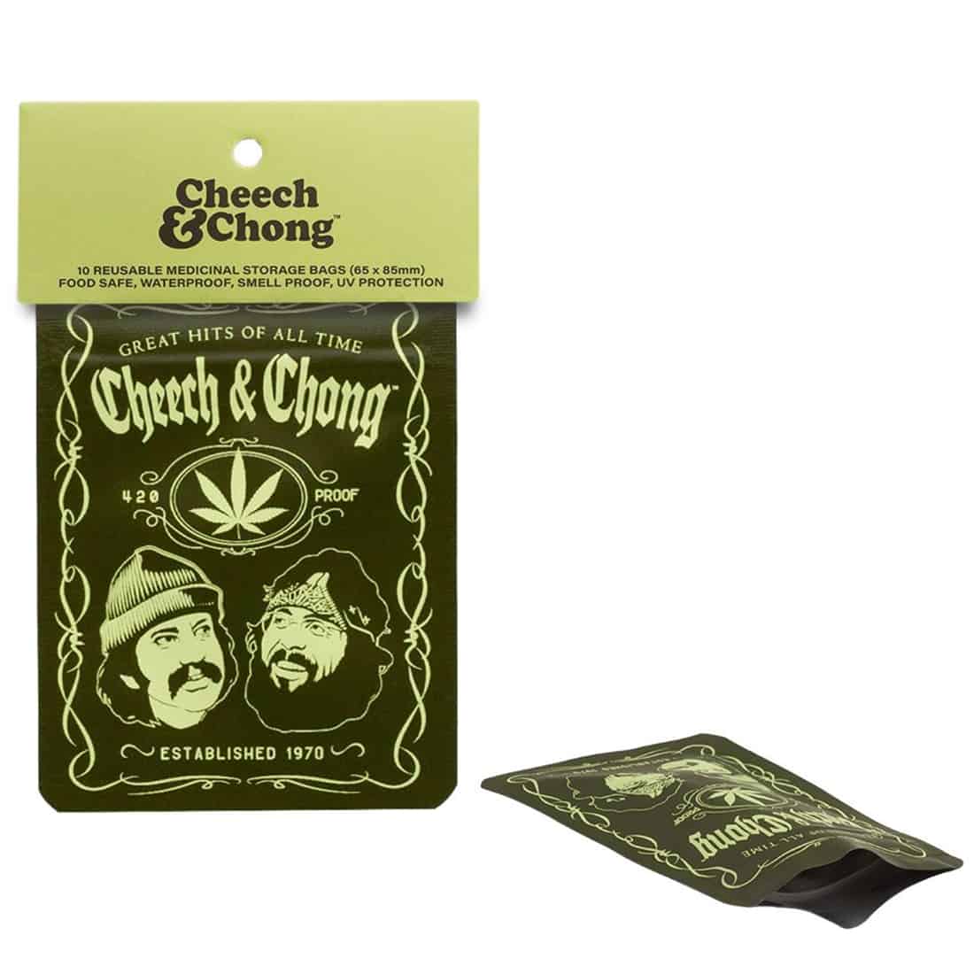 Opbevar dine urter som en sand legende, med denne “Cheech & Chong Greatest Hits” Mylar Bag fra G-Rollz. Med det ikoniske design af de uforglemmelige duo fra 70’erne, er denne zipbag både stilfuld og særdeles praktisk når du skal transportere dine urter rundt. Den måler kun 65 x 85 mm, men gør en stor forskel for dine urter med dens lugttætte og vandafvisende Mylar-materiale. Perfekt til at holde din stash friskt og klart til enhver session, og med dens lynlåslukning kan du pakke og tømme indholdet hurtigt og nemt. Bring lidt nostalgi ind i din dag, og lad Cheech & Chong holde din urter lige så sikre som de er sjove!