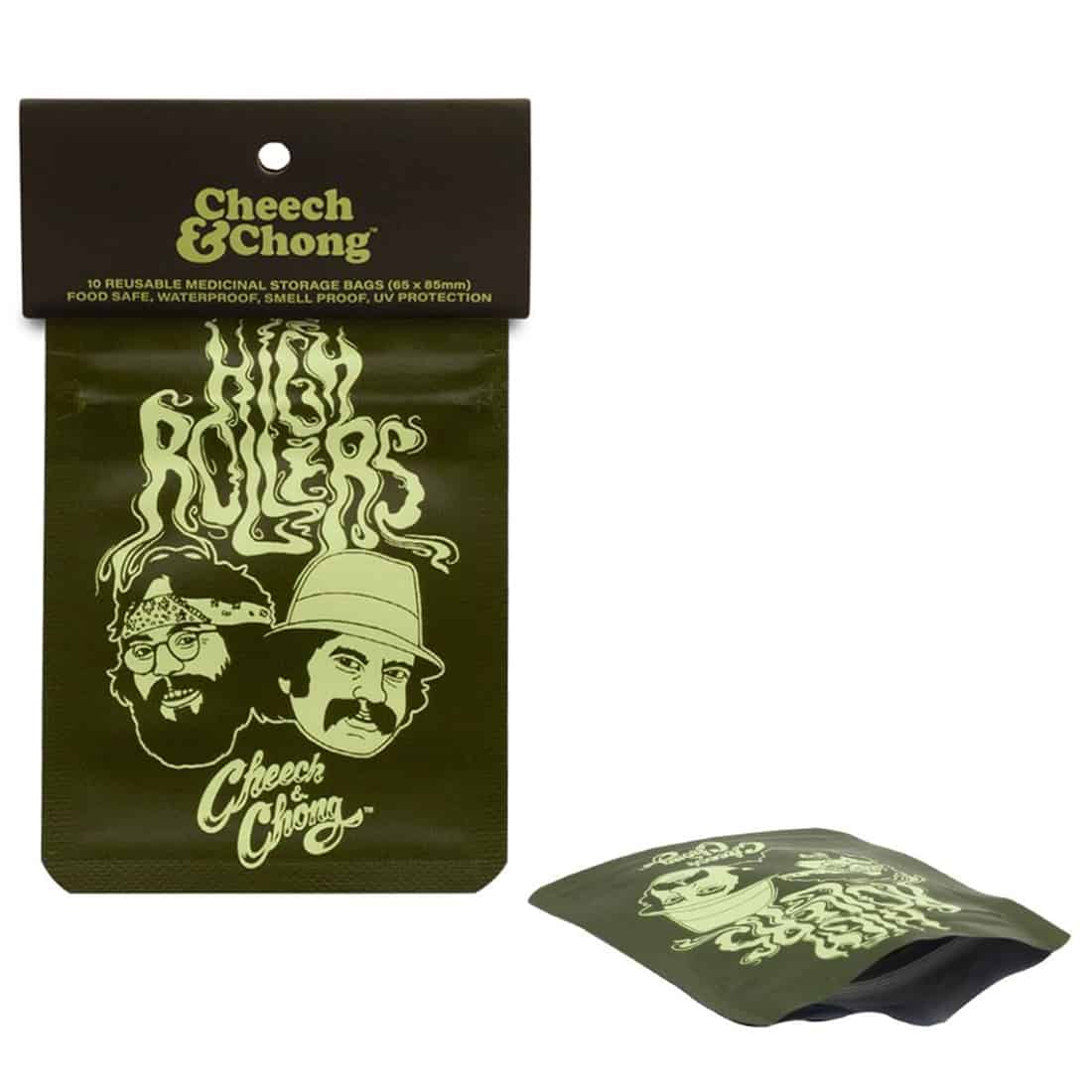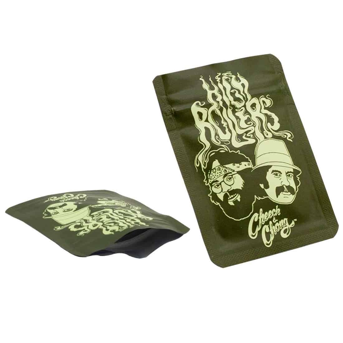 Fejr klassisk stonerkultur med denne “Cheech & Chong High Rollers” lugtfri mylar pose fra G-Rollz! Inspireret af de legendariske duoer, bringer denne lille, men kraftfulde pose stor stil til dine cannabis opbevaring. Designet med den ikoniske grafik af Cheech & Chong, og fremstillet af slidstærkt, lufttæt materiale, holder den dine urter friske og sikre, fra både fugt og nysgerrige næser. Perfekt til diskret opbevaring på farten, og så er den både genanvendelig og ekstra robust, ideel til enhver ægte high roller!