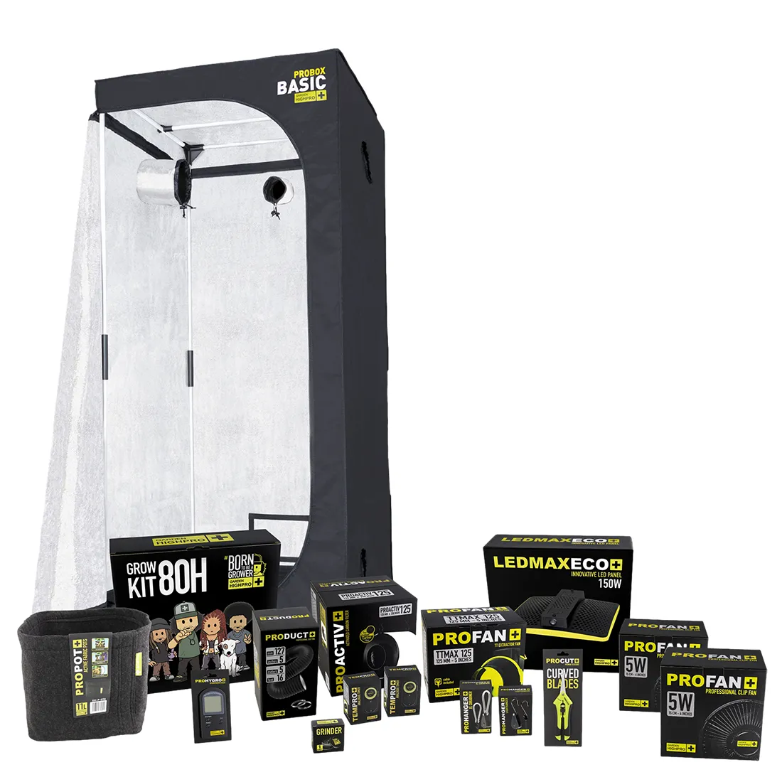 Garden HighPro Grow Kit 80H, er næste skridt for dig der ønsker mere plads og kraftigere lys, til din indendørs dyrkning. Med et teltmål på 80 x 80 x 180 cm, får du et solidt og rummeligt miljø, hvor planterne kan udvikle sig optimalt, samtidig med at du stadig holder et kompakt format, der passer ind de fleste steder.Sættet leveres med LEDMAXECO 150W LED-lys, som efterligner solens spektrum, og giver effektiv vækstbelysning uden unødig varme. For at holde klimaet stabilt og lugtfrit, medfølger to Profan 15 cm cirkulationsblæsere, en TTMAX 125 mm udsugning, samt et Proactiv kulfilter med 250 m³/h kapacitet. Hertil kommer fem 11 liters geotekstilpotter, og et Prohygro Basic termohygrometer, så du nemt kan overvåge temperatur og fugtighed.Grow kittet inkluderer også alt det praktiske tilbehør: to Tempro timers til styring af lyscyklus, Prohanger XL ophæng til at justere højden på lampen, samt en Procut saks. Som ekstra bonus finder du en Magic Box med grinder, dyrkningsguide og sticker. Et komplet setup, hvor du kun skal tilføje jord og frø for at komme i gang.