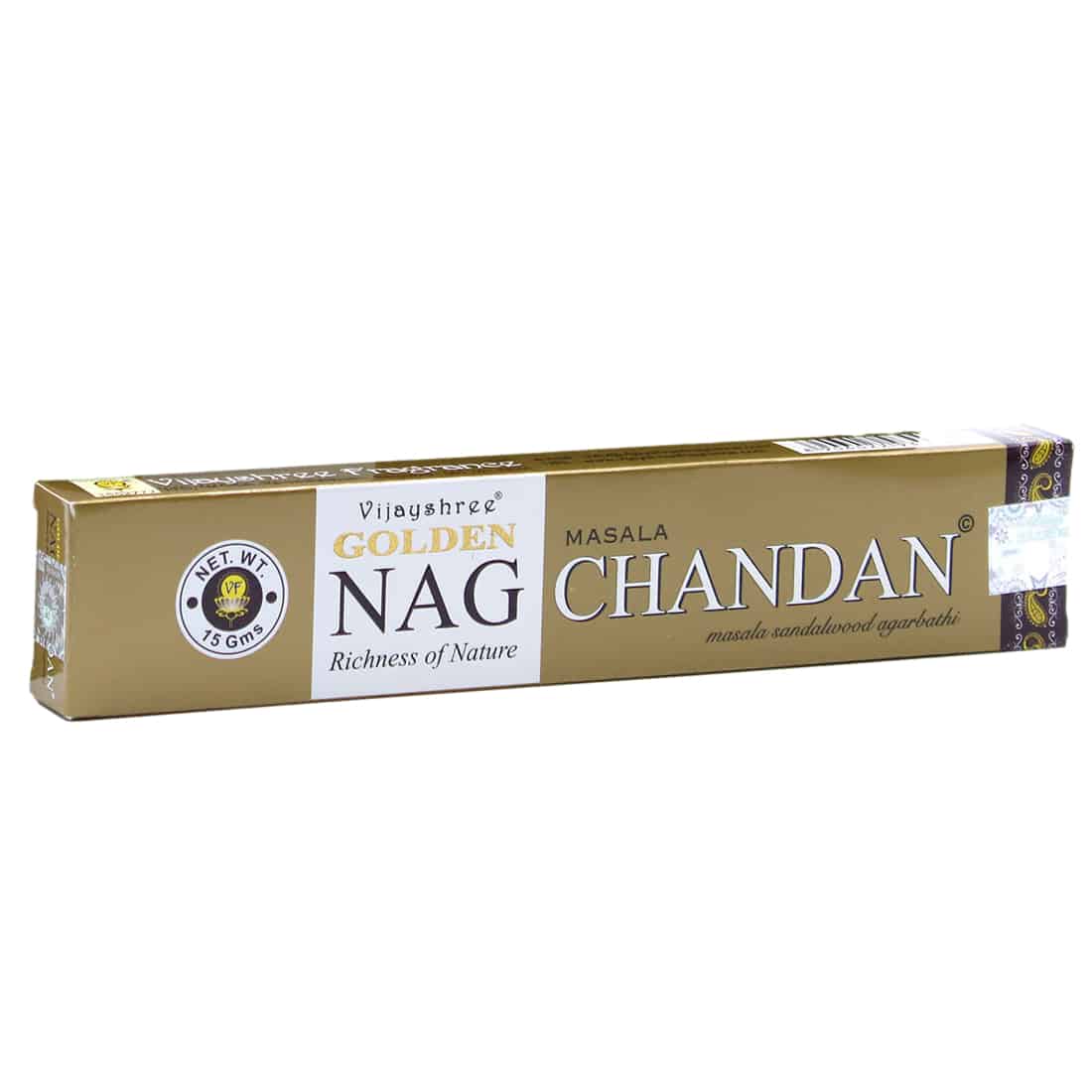Leder du efter en røgelse til at behage dig og dine omgivelser? Med Golden Nag Chandan røgelse får du netop det! Disse håndrullede røgelsespinde fra Indien, er lavet med kun de fineste krydderier, urter, blomsterekstrakter samt olier. Hver ingrediens er nøje udvalgt, og dygtigt blandet for at skabe en positiv indflydelse. Slutresultatet er en røgelse, der er perfekt til at fylde dit hjem eller kontor med en vidunderlig aroma. Desuden er de miljøvenlig fremstillet, og importeres direkte fra fabrikken i Bangalore i Indien. Hver æske indeholder 12-15 røgelsespinde, og har en brændetid på ca. 30 minutter hver.