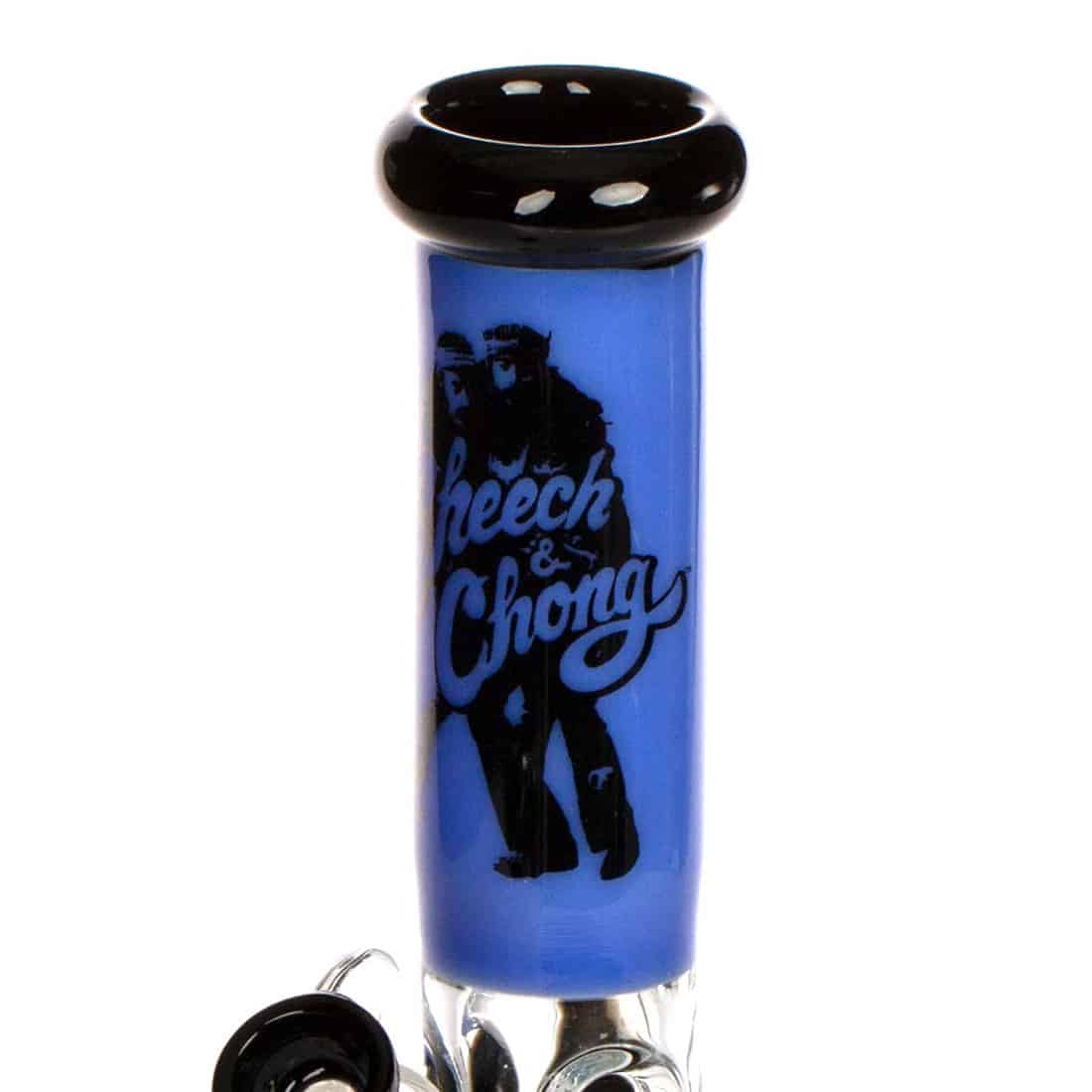 Dette er en Graze Glass Cheech & Chong Beaker Bong i en blå farve. Denne dejlige og detaljerede bong er lavet af 5 mm tykt borosilikatglas af høj kvalitet, og kommer med en integreret isfanger, der hjælper med at køle røgen. Cheech & Chong navnet tilføjer en smule humor og individualitet til denne allerede smukke bong, som egner sig perfekt til enhver bong kollektion. Den leveres med et SG 18,8 mm bonghoved, der passer til det ekstra store slamrør på SG 29,2 mm, og giver dermed et fremragende flow, når du suger, da tykkelsen er ekstra stor. Bongen egner sig mest til erfarne bongrygere, og er ideel til disse der samtidig leder efter en kølig og glat røg. Vi anbefaler at bruge en rist på 15 mm til denne Cheech & Chong Beaker Bong fra Grace.5 facts om Cheech & Chong:– De har fået folk til at grine i over 50 år- Cheech er faktisk mexicansk-amerikansk, og Chong er canadisk-amerikansk- De er kendt for deres kærlighed til cannabis, og de har lavet mange film og sange omkring det.- De fortsætter med at turnere og optræde sammen den dag i dag, og er fortsat gode venner.