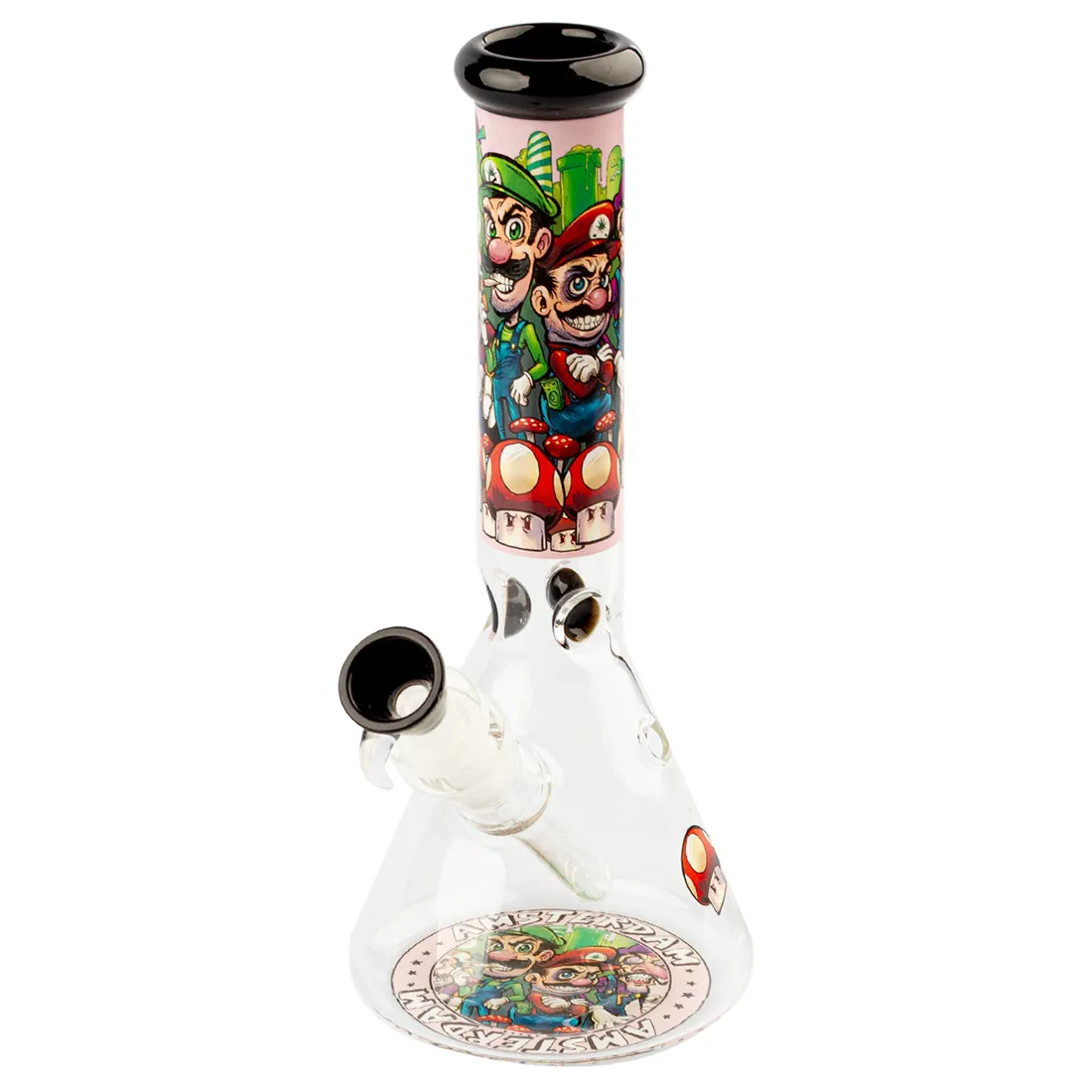 Denne “Mushroom Hero” Pink Beaker Bong fra Grace Glass er en elegant og effektiv bong i et stilrent design, og kommer med et nostalgisk twist fra barndommen. Beaker formen sikrer ekstra vandkapacitet, hvilket giver mere filtrering og køligere røg. Bongen har desuden en praktisk isfanger, så du kan tilføje små isterninger op langs halsen, for en ekstra afkøling på de varme dage. Det farverige og detaljerede motiv er perfekt til de fleste begyndere, der ønsker en bong med både lidt personlighed og gode funktioner. Den kommer med et sliphul på siden, samt et behageligt afrundet mundstykke til læberne, der sikrer god komfort. Vi anbefaler en rist på 15 mm til denne model.