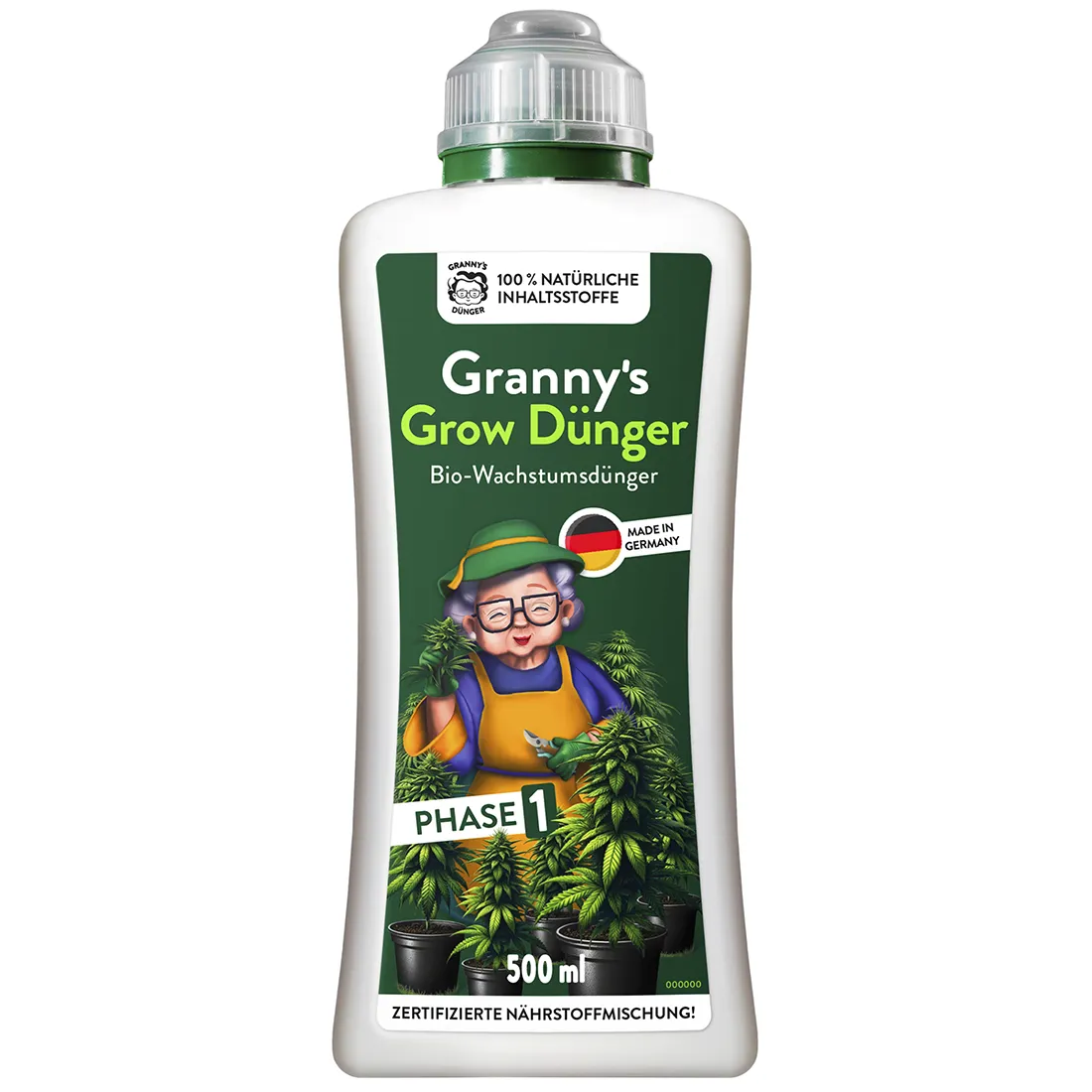 Med Granny’s Grow Fertilizer giver du dine planter en perfekt start på vækstfasen, så de kan udvikle stærke rødder, robuste stilke og sunde blade. Denne organiske vækstgødning er produceret i Tyskland, af 100% naturlige ingredienser, uden syntetiske kemikalier, og indeholder en nøje afstemt blanding af kvælstof, fosfor og kalium (NPK 4-1-4). Gødningen sikrer, at dine planter får præcis de næringsstoffer som de behøver, for at vokse hurtigt og sundt, både ved indendørs, udendørs eller hydroponisk dyrkning. Giv dine planter den perfekte omsorg, som kun bedste kan gøre.Sådan anvender du Granny’s Weed Grow gødning : Brug 7 ml. gødning pr. 1 liter vand (1-2 gange ugentligt).