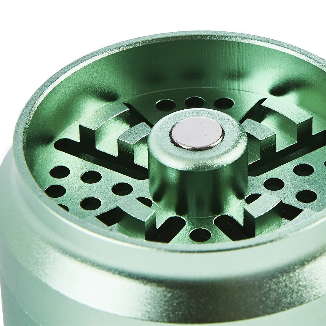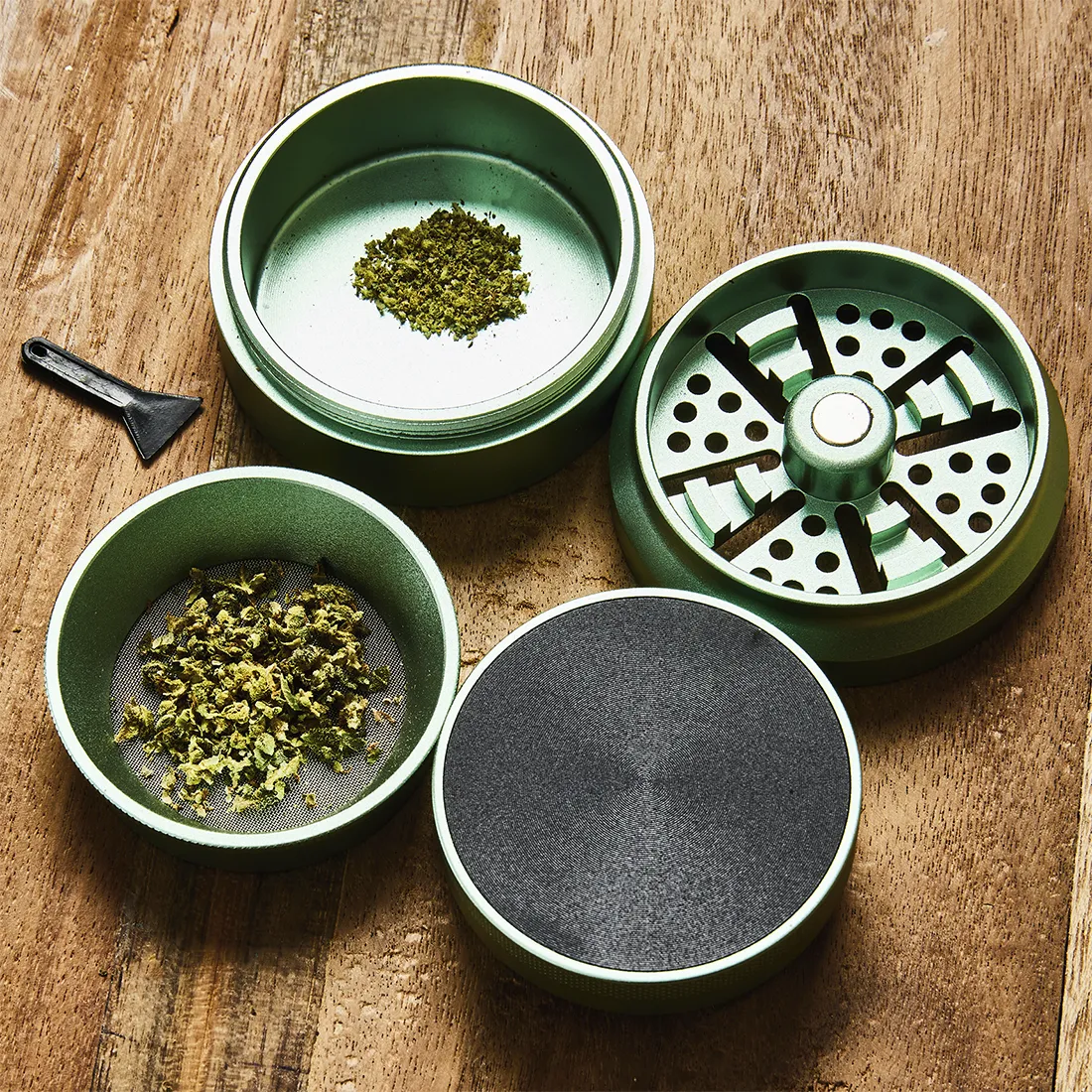 Denne “New World” grinder fra Granny’s Weed, kommer i en frisk grøn farve, og er til dig der foretrækker et groft og luftigt grind. De særlige møllehjulstænder gør kort proces, med selv de største og mest seje topskud, uden at mase eller komprimere dem, så du står tilbage med et grind der er perfekt til vaporizere, piber eller andre setups hvor struktur gør en forskel, og anbefales ikke til joints.Grinderen er lavet i slidstærkt aluminium, og måler 55 mm i diameter og 50 mm i højden, hvilket giver dig masser af plads til plantemateriale. Magnetlåget holder det hele stabilt under brug, og i bunden finder du et pollenrum med tilhørende opsamlingsske, så du altid har styr på rysten.