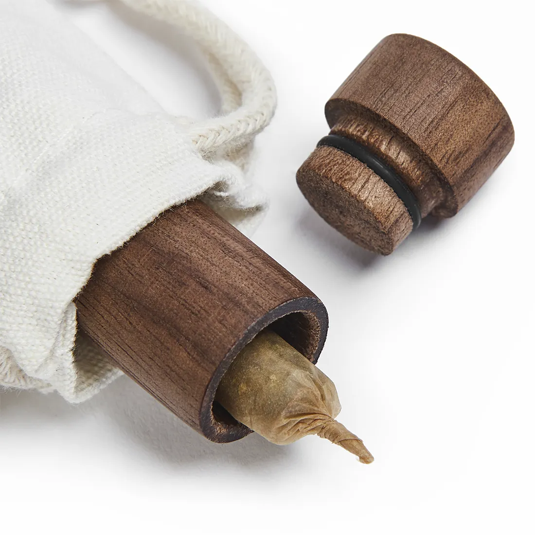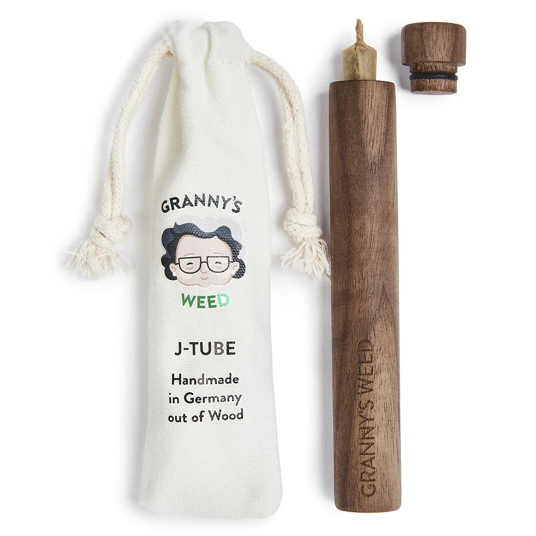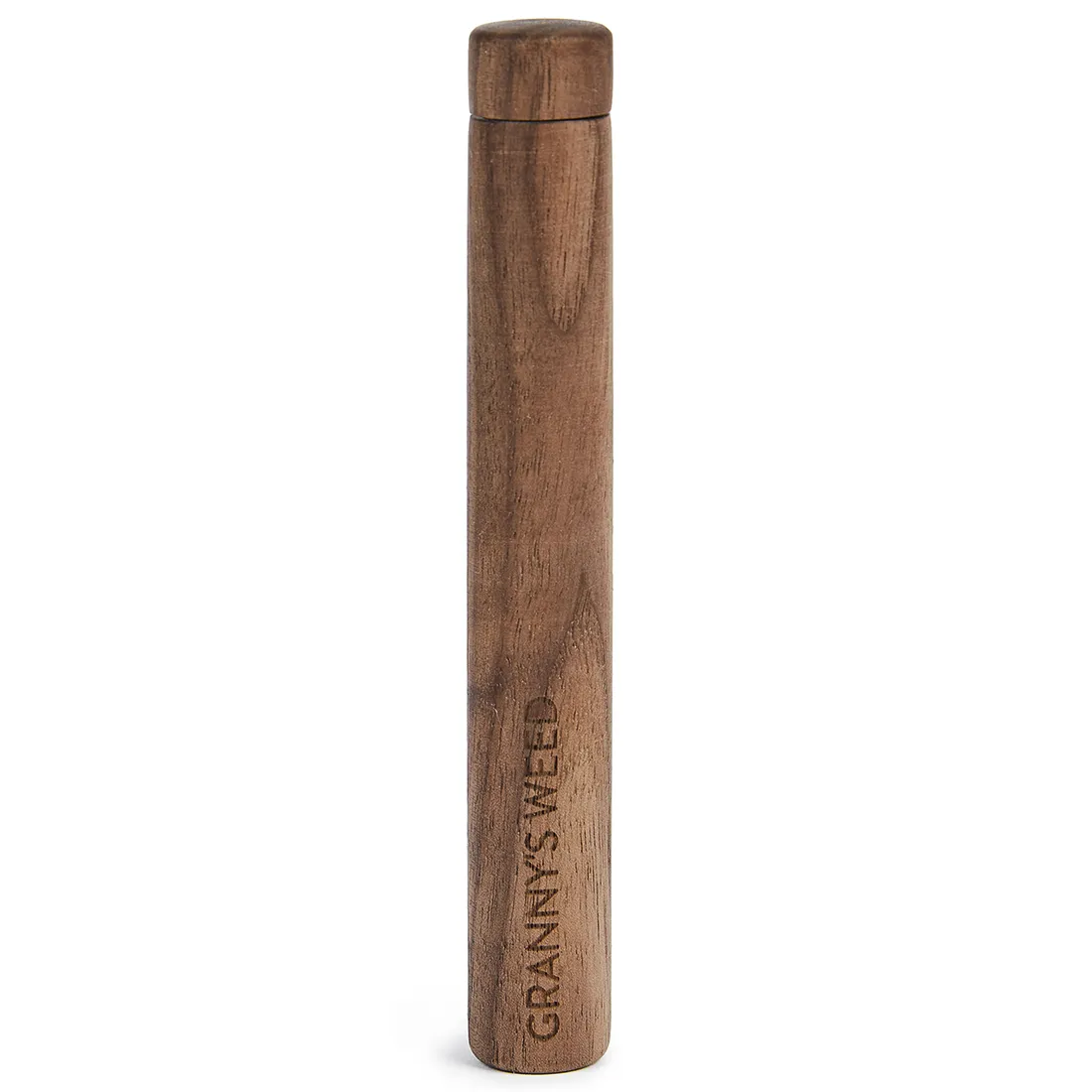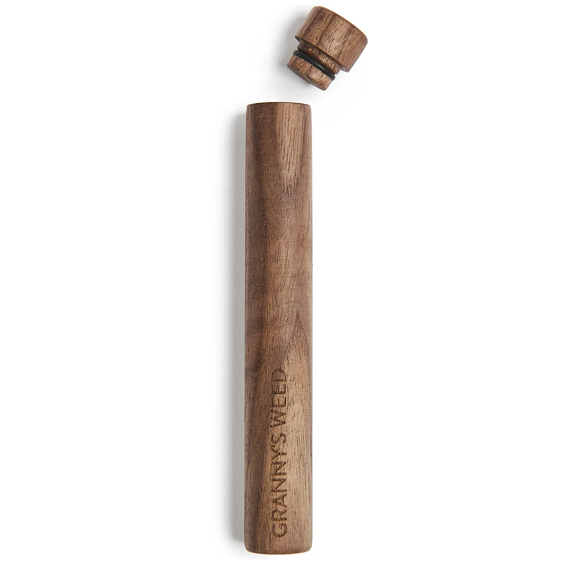 Dette luksuriøse joint hylster fra Granny’s Weed, er håndlavet i Tyskland i ægte træ, og måler hele 140 mm i længden, perfekt til dig der gerne vil transportere dine færdigrullede king size joints med god stil, uden bekymring for at de bliver fugtige eller krøllede. Den mørke finish på træet, og den diskrete indgravering gør det til et stykke praktisk joint tilbehør, som man rent faktisk har lyst til at vise frem. Låget er forsynet med dobbelte gummiringe, som sørger for en lufttæt forsegling, så både aroma og friskhed bevares. Indvendigt har røret en god dybde og bredde, hvilket gør det nemt at få joints i forskellige størrelser sikkert med på farten. Med i pakken følger også en flot opbevaringspose i bomuld, en gaveidé der oser af gennemført kvalitet, fra bedstemor til dig.