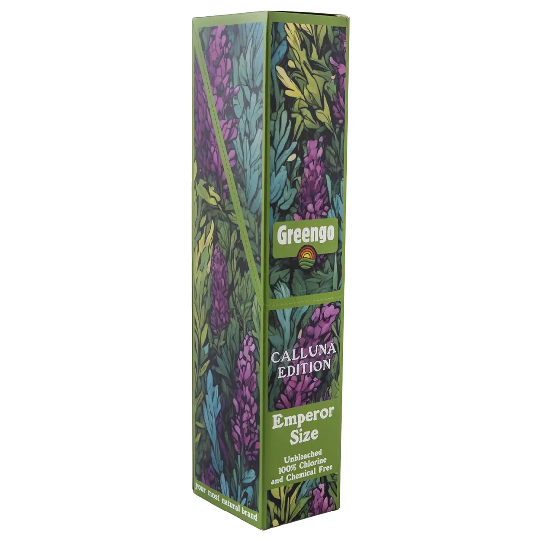 Med Greengo Calluna Edition XXL Emperor Size, får du ekstra stort, ubleget jointpapir, inspireret af den seje og robuste Calluna plante. Papiret er fremstillet af FSC-certificeret træmasse, helt fri for klor og kemikalier, og er derfor ekstra tyndt og giver en mere jævn og langsom afbrænding, med kun en minimal aske fra papiret. Denne pakke indeholder også praktiske filtertips deritl, så du kan rulle store, perfekte joints hurtigt og nemt, perfekt til en god weekend med venner. Hver pakke indeholder 20 stk. papir + filter.