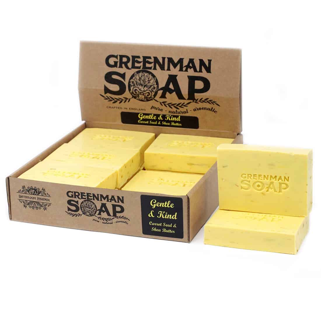 Greenman Soap er en ren og naturlig, velduftende, aromatisk sæbe. Gentle Kind er navnet på denne variant, og sæben der indeholder urter og æteriske olier, er hver især beregnet til et bestemt formål, og ideel som håndsæbe til toilettet eller køkkenet Denne håndlavede kollektion af koldbehandlede elementære sæber, er inspireret af den gamle keltiske myte om Greenman: Naturlig, jordnær og energisk fra skovens fugtighed. Fordi de er så basale fremstillet, er duftene af sæberne ret opkvikkende, og de indeholder kun bæredygtig palmeolie, rene aromatiske olier, samt de bedste parfumeolier på markedet, og hjælper med at forvandle din vask til en ægte rensningsceremoni! Greenman sæberne er fremragende håndsæber, som også er parabener og SLS fri, så du både får det bedre med din hud og miljøet. Sæben er duftende med jordnære æteriske olier, herunder egetræsmos, sød appelsin, nellike og muskatnød.