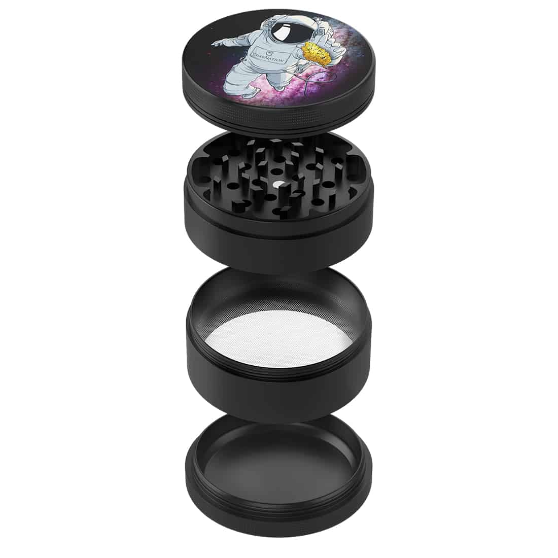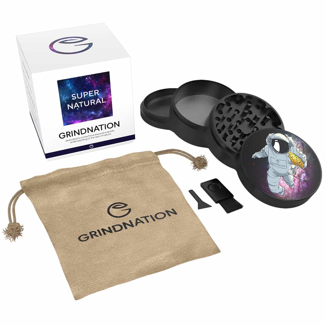 Hvis du har en ting for rummet eller specifikt astronauter, og samtidig søger en ny og stabil grinder, så er det denne Astronaut grinder fra Grindnation du har ventet på! Den er fremstillet af kvalitets aluminium, med et skarpt diamant tandsæt der giver en god friktion. Grinderen kommer med 3 rum i alt, hvor det nedereste af disse bruges som opsamlingskammer til overskydende ryst fra planten, som effektivt kan skrabes sammen med den medfølgende opsamlingsske. Dertil medfølger en lille børste, og så bliver den leveret i en praktisk opbevaringspose fremstillet af hamp.