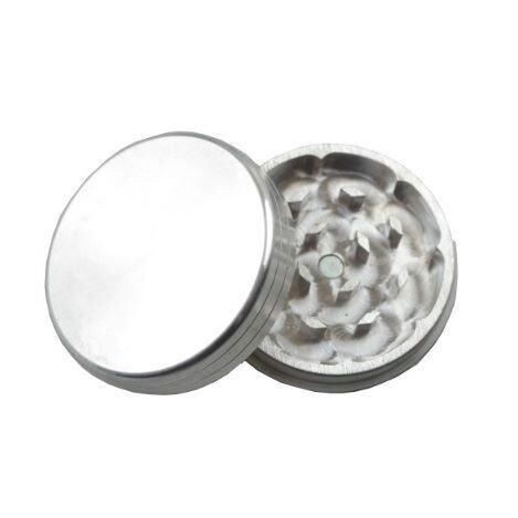 Dette er en stor grinder i to dele til at knuse dit pot eller skunk med. Den er fremstillet af aluminium og i en sølv farve, og så har den ekstra skarpe tænder som giver en god og effektiv modstand, og derudover en magnet i låget som holder delene sammen.