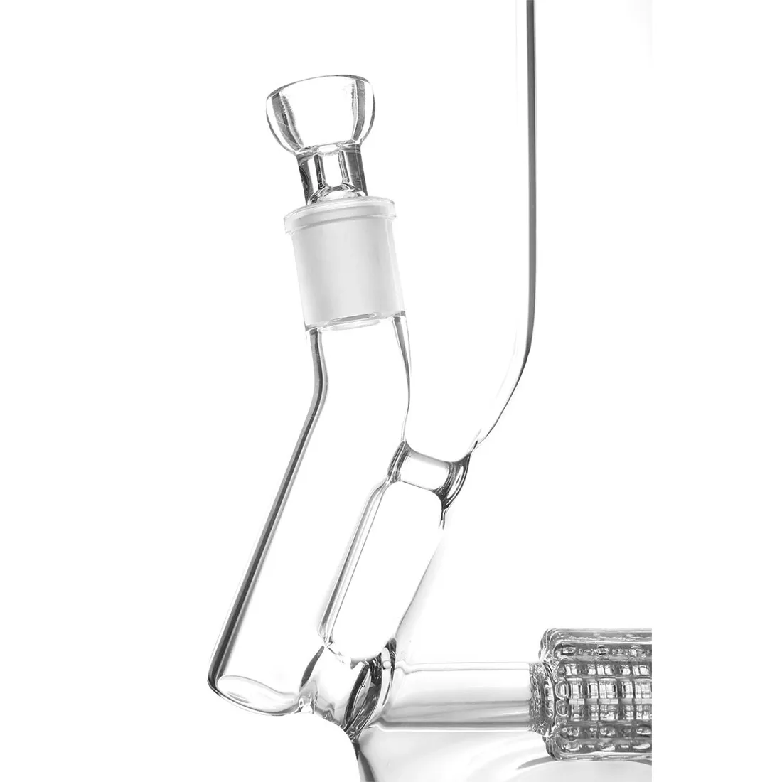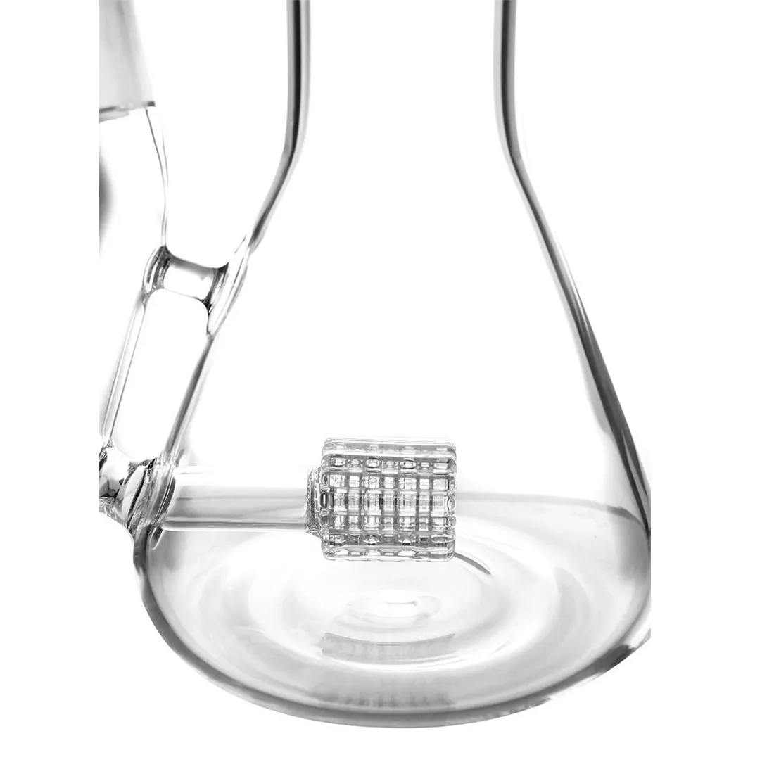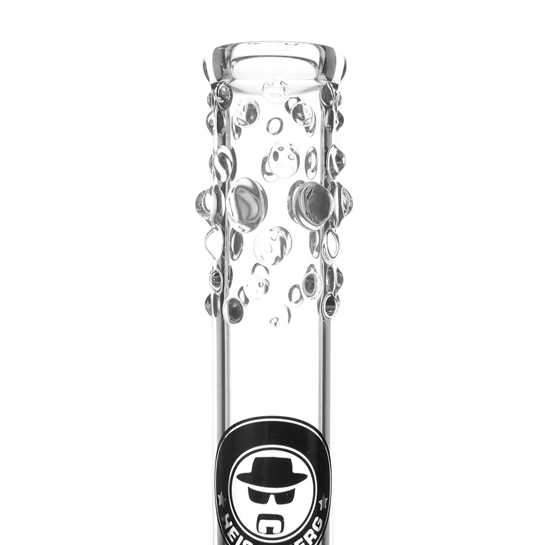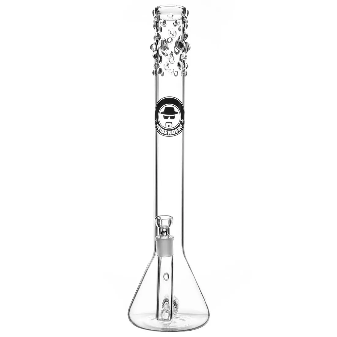 Heisenberg Beaker Bubble Matrix er en flot og standard glasbong, der måler ca. 50 cm i højden. Denne bong er designet uden et traditionelt slamrør, da det er fastgjort indeni bongen, og går over i en matrix percolator, som skaber en kraftig virvel, og dermed giver en utrolig mild og behagelig rygeoplevelse. Med en glastykkelse på 5 mm, samt en diameter på 50 mm, giver den masser af kapacitet til store mængder af røg, der uden ekstra køling eller filtrering, gør den ideel for de mere erfarne bongrygere. Vi anbefaler at bruge en rist på 12,5 mm til denne bong.