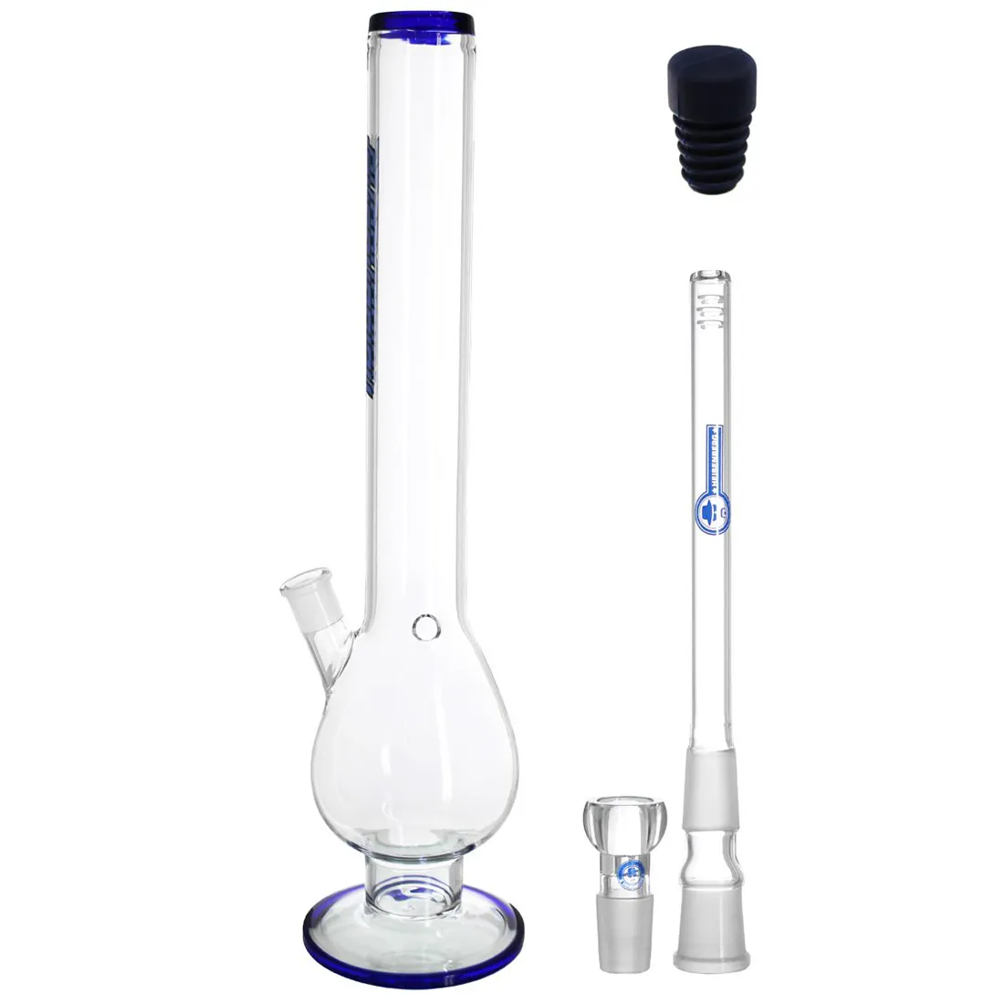 Heisenberg Big Mama 3.0 er en klassisk og populær glasbong, med en højde på 50 cm. Denne nyeste version byder på flere forbedringer, som gør rygeoplevelsen endnu bedre. Big Mama har fået en lidt smallere munding, hvilket mange rygere foretrækker, samt en ekstra tyk, stabil fod, der giver optimal balance. Bongen har også et effektivt slamrør med diffuser slits i bunden, der sikrer en blød og behagelig filtreret røg hver gang. Modellen kommer med et sliphul i siden, der kan lukkes med en praktisk silikoneprop, så du nemt kan ryge både med og uden sliphul. Desuden er dette også praktisk når bongen skal rengøres, som er særdeles nemt med en børste og den korrekte bong rens. Vi anbefaler en rist på 15 mm til denne Big Mama 3.0 bong.