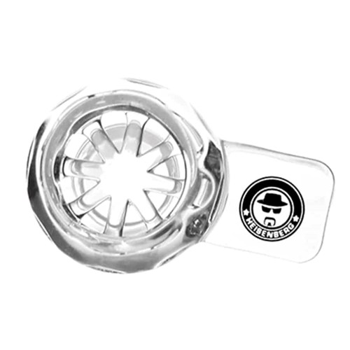 Dette bonghoved fra Heisenberg, kommer med en indbygget rist, der egner sig ideelt til pot eller skunk. Ønskes det at ryge andet, anbefaler vi at tilkøbe en bongrist på 15 mm, så tobakken ikke falder imellem den forholdsvis brede rist. Den kommer med en særdeles solid og praktisk hank på siden, med et Heisenberg motiv af den legendariske Mr. White, der burde gøre de store Breaking Bad fans ekstra glade. Den kommer med en socket på SG 18,8 mm, og passer på alle slamrør / downtubes med en tilsvarende socket på SG 18,8 mm.