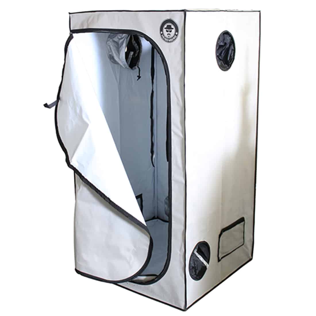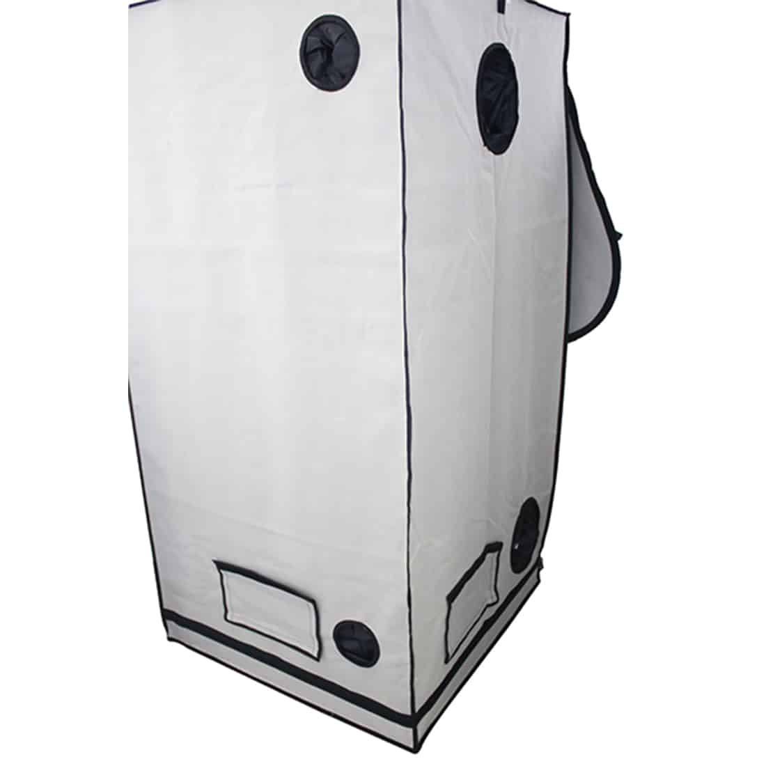 Dette hvide Heisenberg gro telt i målene 80 x 80cm x160 cm, er det ideelle valg til et mindre lukket dyrkningsrum. Det er oplagt til opretholde en moderplante i, samt opfostring af nyesatte stiklinger og kimplanter. Teltdugen består af flere lag, som sikre dig at telt er komplet lystæt. Der er 6 udgange til ind- og udsugning, 4 store(Ø:20cm) og 2 små (Ø:10cm), samt 3 inspektionsvinduer med insektnet i. Derudover er der er mulighed for anvendelse af cool-tubesystmer. Det yderste lag består af 2100D polyester textil, invendigt er teltet beklædt med højreflekterende hvid overflade, samt er lynlåsen også helt lystæt. I denne hvide udgave er indersiden beklædt med højreflekterende PE, som reflektere 98 af lyset (PAR) tilbage på planterne. Dette bidrager til større udnyttelse af lyset og dermed større udbytte. Brugsanvisning til samling medfølger.