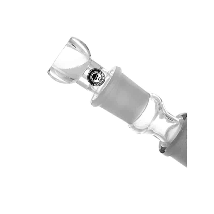 Denne Mad Professor bong fra Heisenberg og dens særprægede design, gør det til virkelig godt fund til prisen. Den indeholder et udskiftelig slamrør, som filtrerer det første snavs i vandet, og så filtereres det yderligt med den aftagelige percolator i midten af bongen, der samtidig hjælper med at køle røgen yderlig. Den smalle passage begrænser slet ikke luftstrømmen, og percolatoren kan hurtig og let aftages med den tilhørende tang, hvilket gør bongen ekstra nem at rengøre. Mad Professor fra Heisenberg er designet med cannabis rygning i tankerne, og fuldender din rygeoplevelse, der sammen med de to kamre og dens smalle form, som gør det nemt at holde den i hånden. Den er uovertruffen i design og pris, og giver desuden en fantastisk komfort for læberne, med den afrundede mundstykke i toppen. Vi anbefaler at tilkøbe en 12,5 mm rist, da disse ikke medfølger som standard, for at undgå at dit mix ryger igennem bonghovedet. Rigtig god ryger!