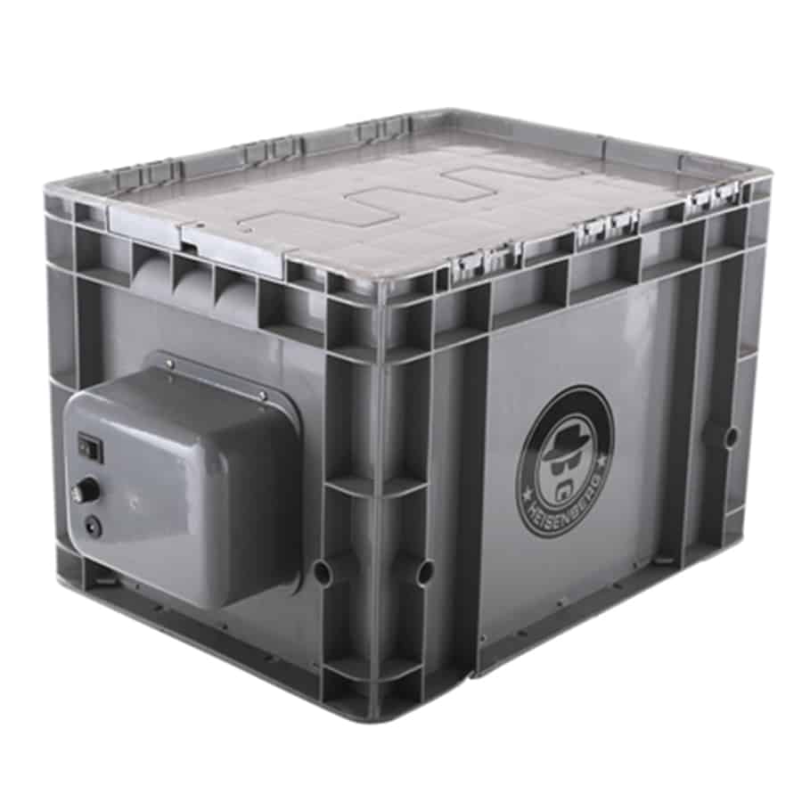 Med denne Heisenberg pollinator / pollen maskine, får du seriøs tromle til at fremstille ryst eller kief på, til en særdeles attraktiv pris! Den kan køre ca. 150 gram plantemateriale igennem pr. gang, og den gode kvalitet fra Heisenberg, giver en god og lang holdbarhed på tromlen. Som en nyhed på de nyeste producerede pollen maskiner, kommer de nu med en ny og forbedret si af stål, de giver en endnu bedre filtrering end de gamle modeller af messing. Den måler en total længde på ca. 46 cm, men selve kassen måler kun 40 cm. Pollenmaskinen er særdeles nem og brugervenlig, hvilket gør den ideel til både begyndere, samt til de mere erfarne hjemmedyrkere. Den forholdsvis lille størrelse på maskinen, gør den nem at pakke sammen og gemme væk. Bliver leveret med en EU strøm forsyning / adapter.