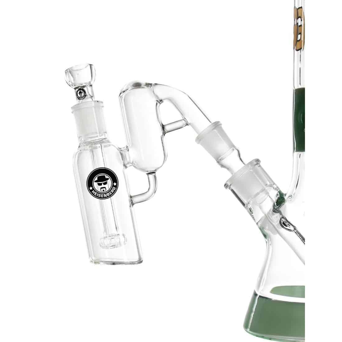 Denne Heisenberg Shower Precooler er designet til at forbedre din rygeoplevelse, ved at køle røgen før den når din bong. Forkøleren er udstyret med en disk-diffusor samt et boblekammer, der sammen skaber virvler i røgen, og hjælper med at køle røgen ned og dermed gør den blød og behagelig at indånde. Udover at køle røgen, fungerer den også som et filter, der fanger snavs som aske, slam og tjære, hvilket hjælper med at holde din bong mere ren og nydelig, så den ikke skal rengøres så ofte. Den er lavet af varmebestandigt borosilikatglas, og er prydet med Heisenberg logoet for et æstetisk og funktionelt design, perfekt til alle bongrygende Heisenberg fans! Den passer på alle bonger med et indløb på SG 18,8 mm, og der skal anvendes et bonghoved i samme størrelse, da den ikke bliver leveret med et hoved hertil.