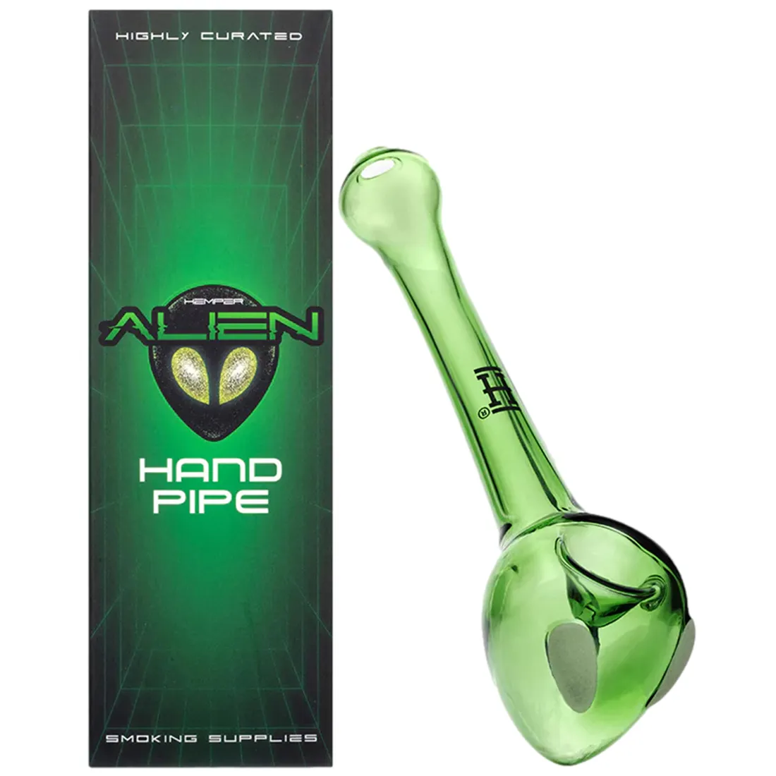 Tag med på en interstellar rygetur med denne HEMPER Alien Pipe, som er en gennemført lille glas pibe, formet som et alienhoved med selvlysende øjne og lidt sci-fi vibes. Med sin kompakte størrelse og gennemsigtige grønne glas, er den perfekt til korte missioner eller som en sjov tilføjelse til pibe samlingen. Den er lavet i solidt borosilikatglas, og designet som en klassisk spoon pipe, der ligger godt i hånden, og leverer en god ryger hver gang. Perfekt som gave til cannabisrygende rumnørder, samt rygere med sans for det mærkelige. Vi anbefaler at bruge en rist på 10 mm, og som en god gaveide til alle alien interesserede rygere.