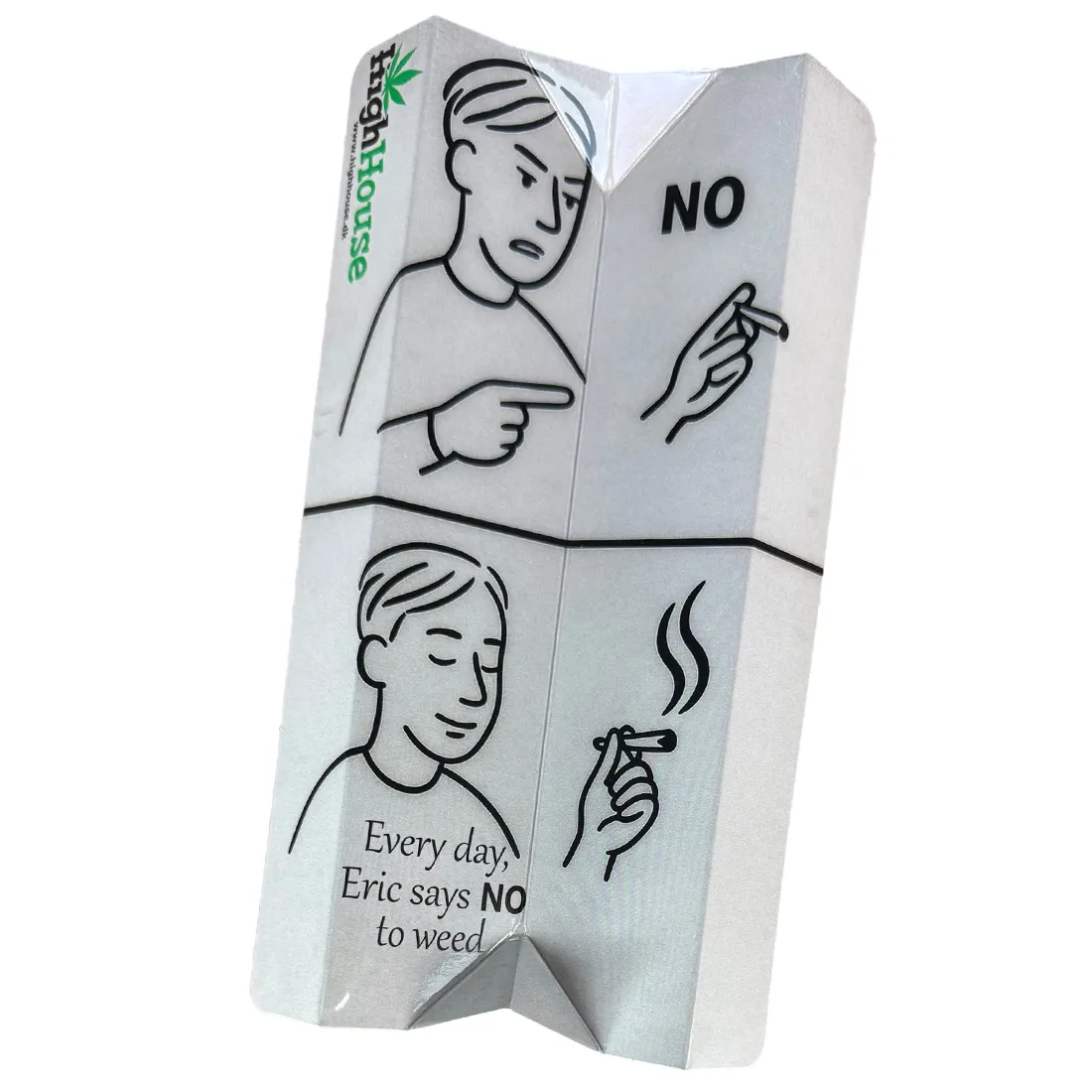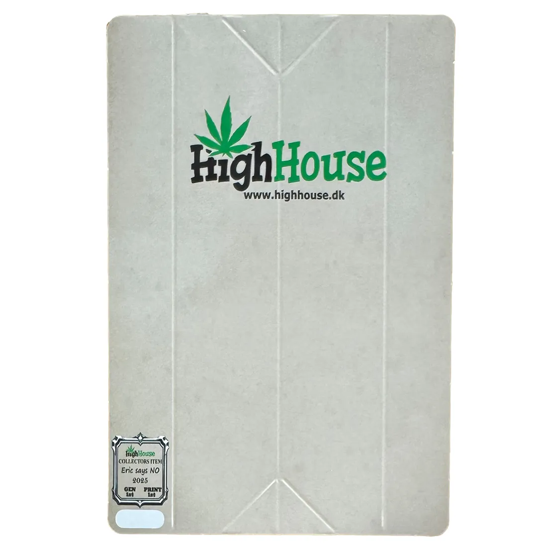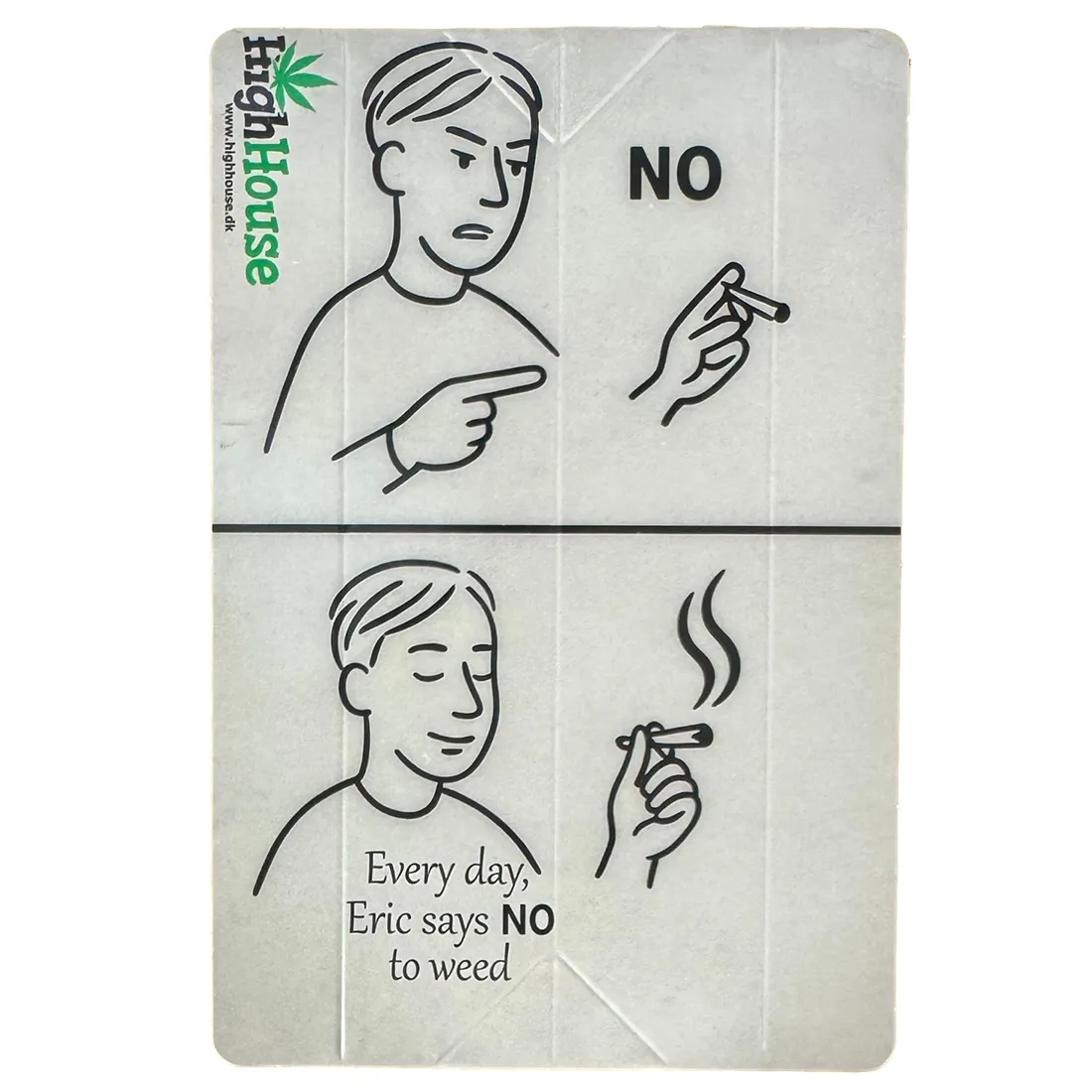‘Eric Says NO’ er en del af vores egen HighHouse serie af mixerbakker, og er første generation samt første print fra 2025. Et lille grin til hverdagen, og den første af vores række af “meme-bakker”.Produceret lokalt i Danmark i solidt pap, og med rundede kanter, samt en lamineret overflade på begge sider, så dit mix altid glider let når du fylder din joint. Som de andre bakker i kollektionen kan den foldes på flere måder, men er kun lavet i et begrænset antal på 1650 stk. – Så hvis Eric siger NO, bør du nok sige YES, og få fat i din egen før det er for sent.