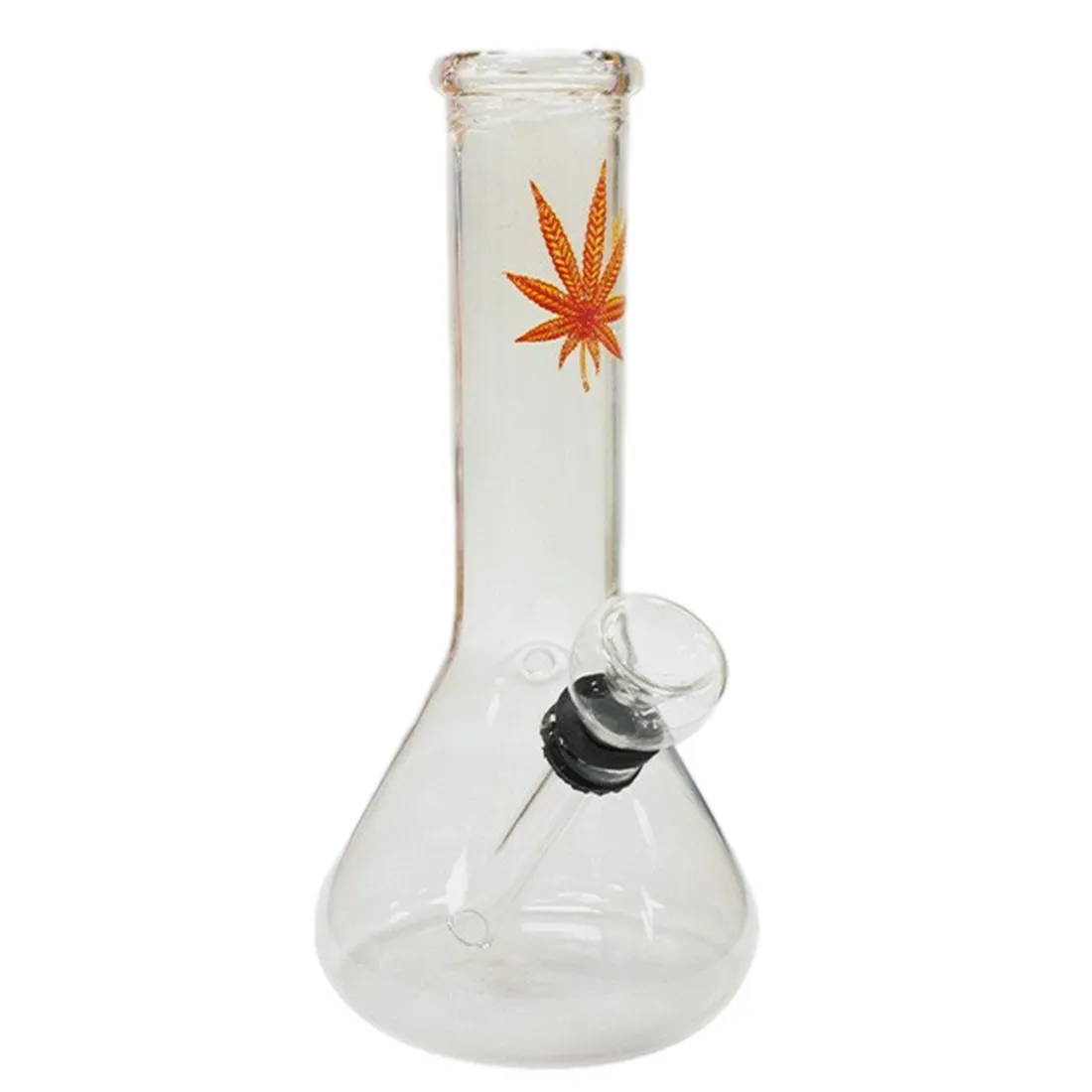 Dette er en lille og diskret glas bong fra HoneyPuff, der kommer i en flot klar farve. Den har en højde på blot 15 cm, og en diameter på 73 mm når man måler i bunden af kolben. En fin lille reserve bong, der egner sig ideelt til at have med på tur, da den er nem at pakke sammen og have med rundt. Den kommer med et lille sliphul på siden, og et hampblad som motiv på halsen, og derudover har den en såkaldt downpipe i en “one size” størrelse, som betyder at hovede og slamrør er bygget sammen, og derfor ikke kan skiftes seperat. Vi anbefaler at bruge en rist på 10 mm til denne lille glas bong.