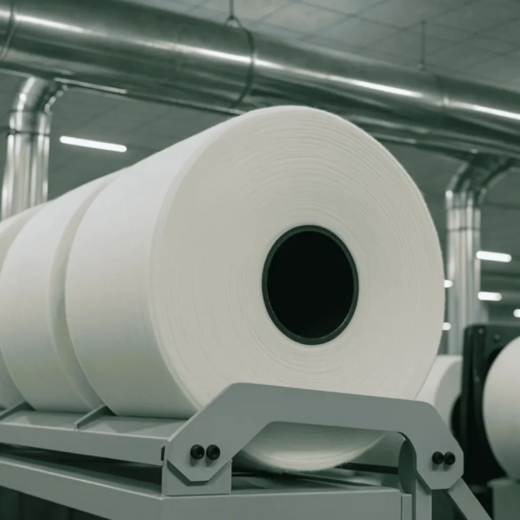 Det fugtige fiberlag kører derefter gennem en serie presvalser og opvarmede tromler, som forsigtigt presser og tørrer laget, indtil det bliver til et sammenhængende tyndt papirark.