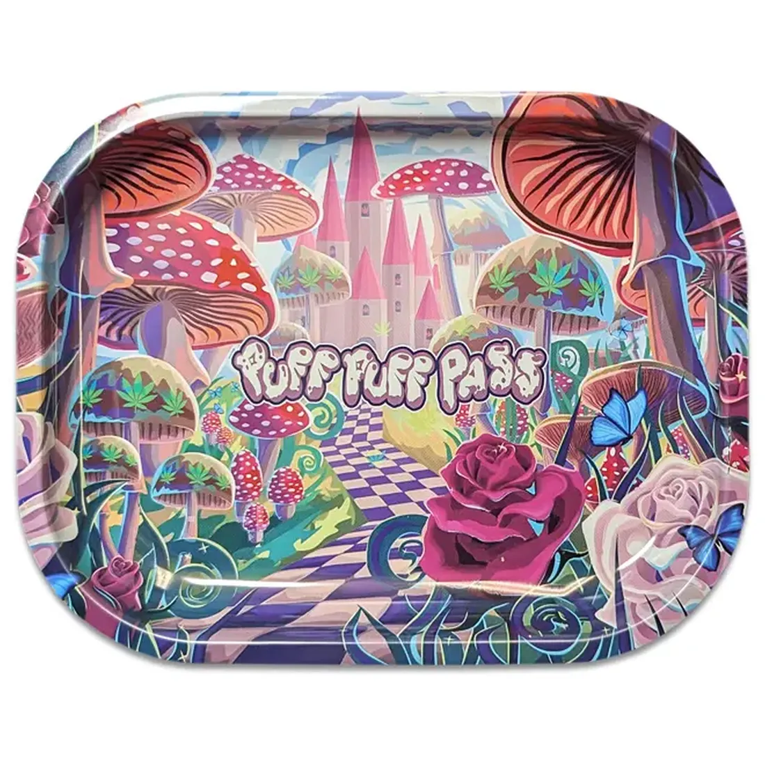 Fantasy Castle er et af de mere legesyge motiver i Jelly Jokers serie, og det giver et andet udtryk end de klassiske skull- og weed-designs. Metal med afrundet kant holder papir, filter og det løse på plads, og bakken er nem at tørre af bagefter.