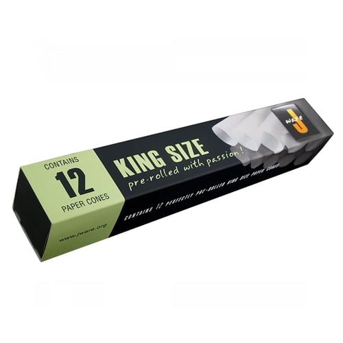 Disse færdigrullede cones er produceret af Jware, og fremstillet af rent rispapir og kommer i en king size størrelse, samt en konisk form. Alle cones har en normal længde på 109 mm samt et filtertip på 25 mm. Hver pakke indeholder 12 stk. Jware cones.