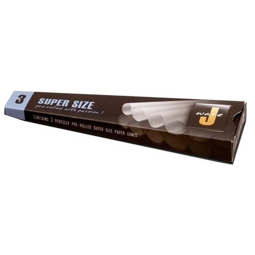 Disse færdigrullede cones er produceret af Jware, og fremstillet af rent rispapir, og kommer i en super size størrelse samt en konisk form. De er ekstra store med en længde på 180 mm, og har et ekstra stort filtertip på 45 mm, og kommer i en pakke med i alt 3 stk. Jware cones.