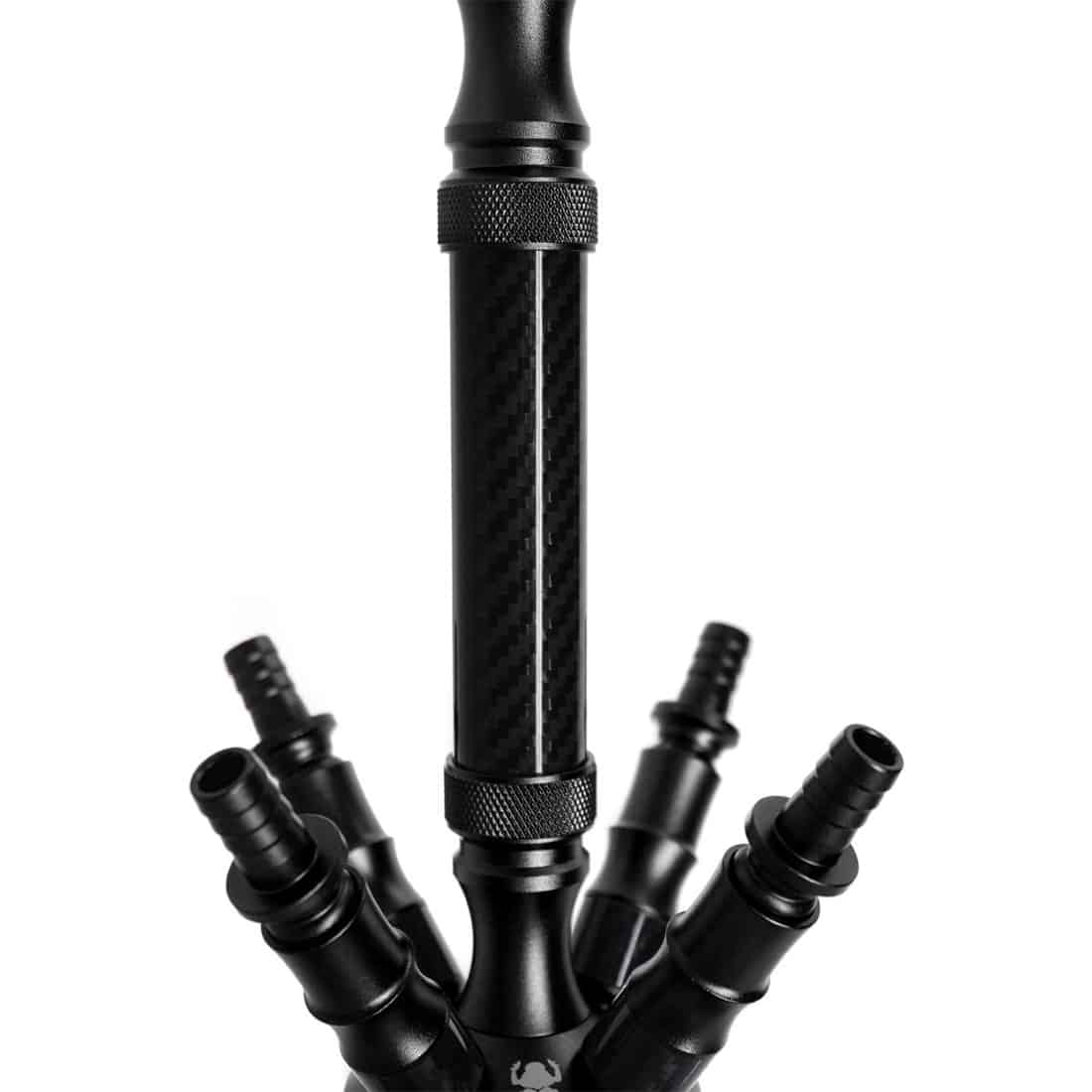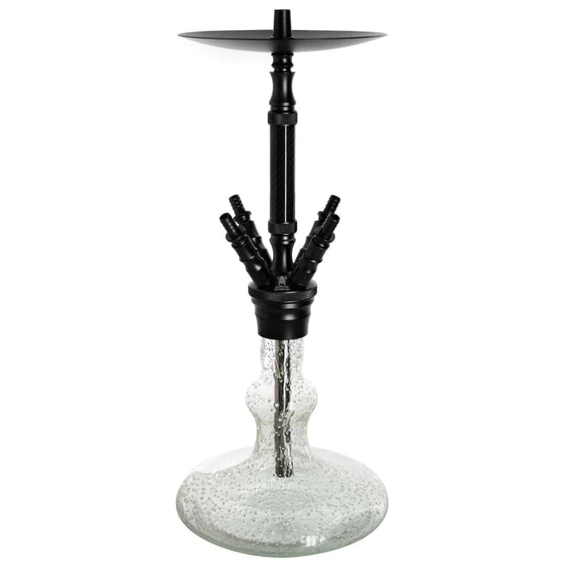Denne Kaya ELOX ECO Carbonia Glow er en imponerende vandpibe, fremstillet af højkvalitets glas og anodiseret aluminium. Den har et unikt og iøjnefaldende design, med et skaftelement der lyser op i mørket, og giver en enestående rygeoplevelse med op til 4 slanger på samme tid. (Der medfølger dog kun 1 fra producenten). Vandpiben har en standard 18,8 mm socket i spidsen af skaftet, hvor en melassefanger nemt kan monteres i glasset. Med en maksimal højde på 70 cm når den er samlet (55 cm uden hoved og tilbehør), er dette den perfekte vandpibe til en hyggeaften med vennerne.