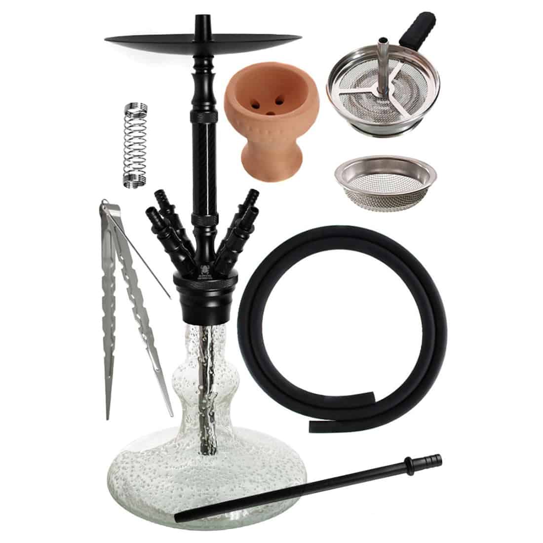 - Leveringsomfang:1 x Kaya ELOX ECO Carbonia Glow hookah1 x Skorsten attachment sæt inkl. skorsten, rist og lerhoved1 x Silikoneslange (150 cm)1 x Mundstykke i aluminium- Leveres i passende indpakket kasse fra producent.