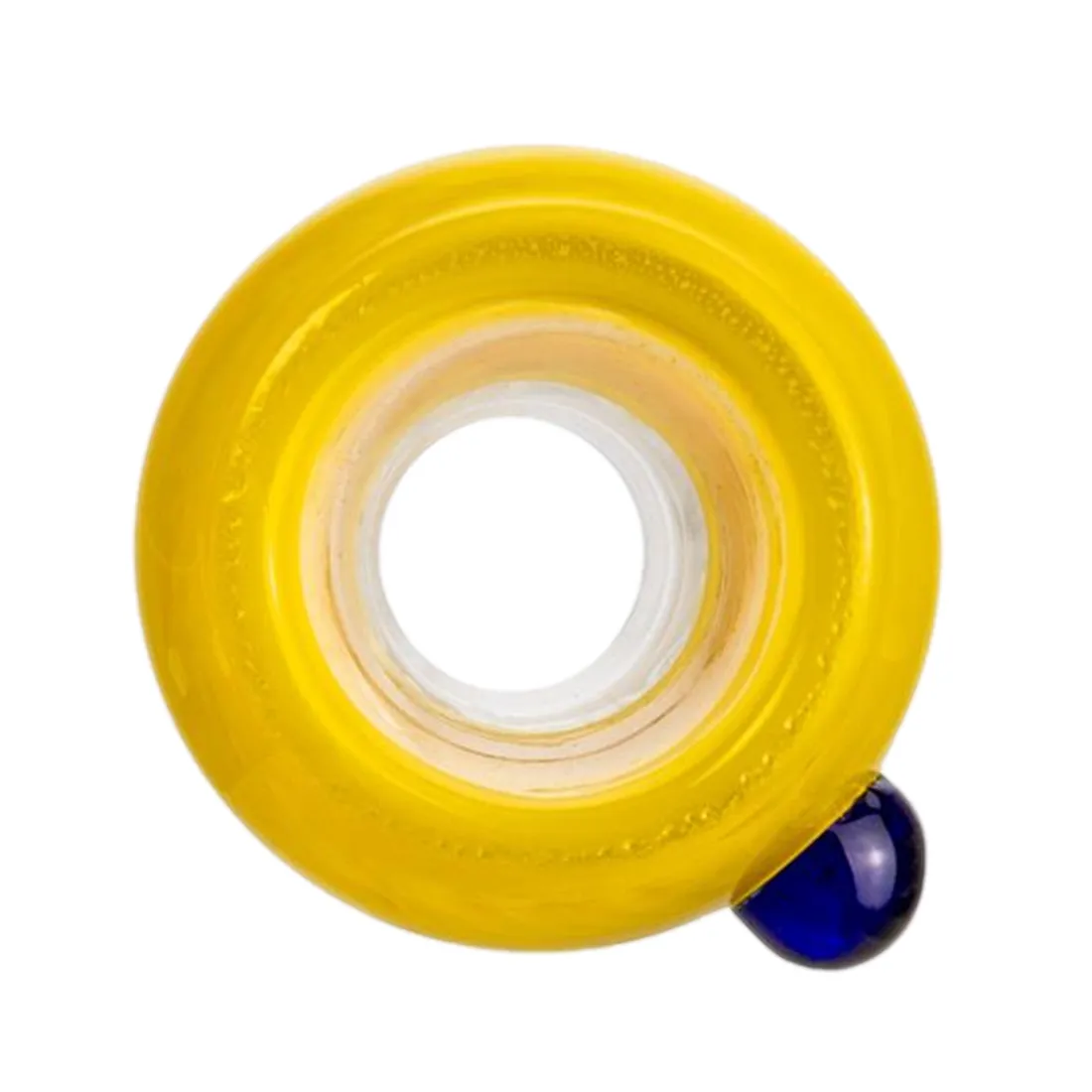 Dette er et stort og solidt bonghoved, lavet i tykt borosilikatglas og med en rund form og stor kapacitet, perfekt til erfarne bongrygere der ønsker ekstra meget gennemtræk ved lufthullet. Dette sikrer altid effektiv luftgennemstrømning, og med en lille knop på siden, er du sikret at det ikke triller væk fra bordet. Passer til SG 18,8 mm slamrør, og vi anbefaler en 15 mm skeformet rist (spoon screen).