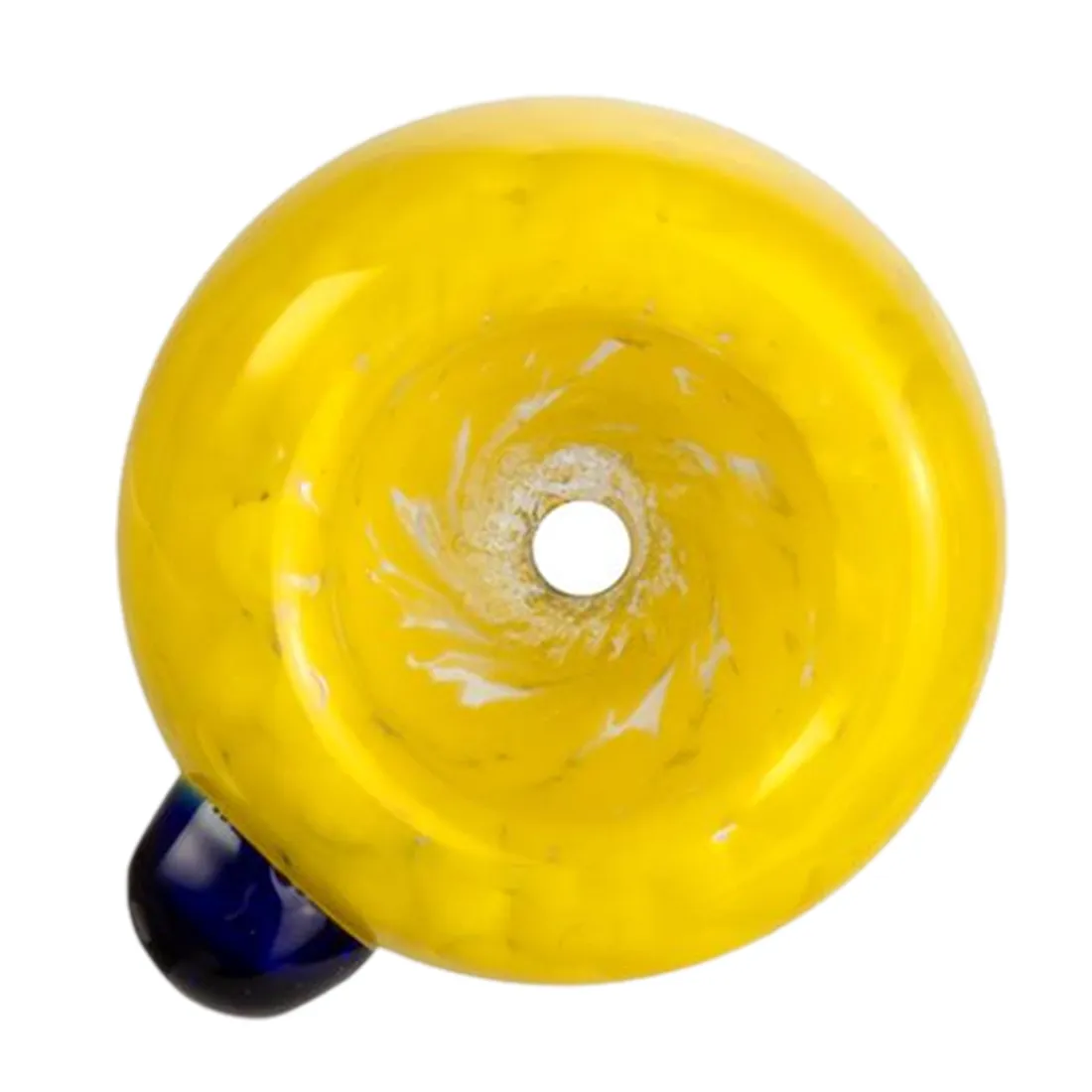 Dette KNIST B7 Small Hole Bowl i gul farve, er et farverigt og funktionelt glas bonghoved, designet med et lille lufthul der giver en god kontrolleret luftstrøm, perfekt til begynder der ryger på bong med sliphul. Den kompakte form og det afrundede design, gør det nemt at bruge, mens den lille rullerstopper på siden sikrer, at hovedet bliver liggende og ikke triller væk.Vi anbefaler at bruge en 10 mm rist til dette hoved.
