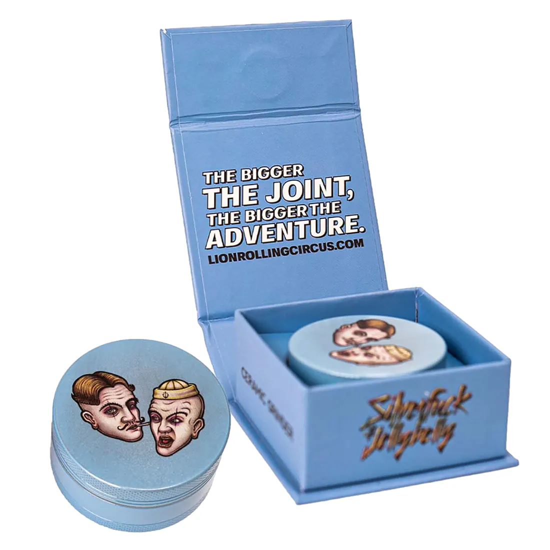 Denne Silverfuck & Jellybelly Grinder fra Lion Rolling Circus, bringer liv og farve til dit daglige grind. Fremstillet i høj kvalitets aluminium, og dækket af en fødevaregodkendt keramisk belægning, kværner den dine urter uden problemer. De skarpe diamantformede tænder sikrer et jævnt og ensartet grind, mens det indbyggede pollenfilter effektivt samler ryst fra dine urter, som kan skrabes sammen med den medfølgende ske. Grinderen er 3-delt, og har et magnetisk låg der holder den sammen under og efter brug. Den leveres i en stilfuld æske og stofpose i samme design, hvilket gør den perfekt som gaveide.