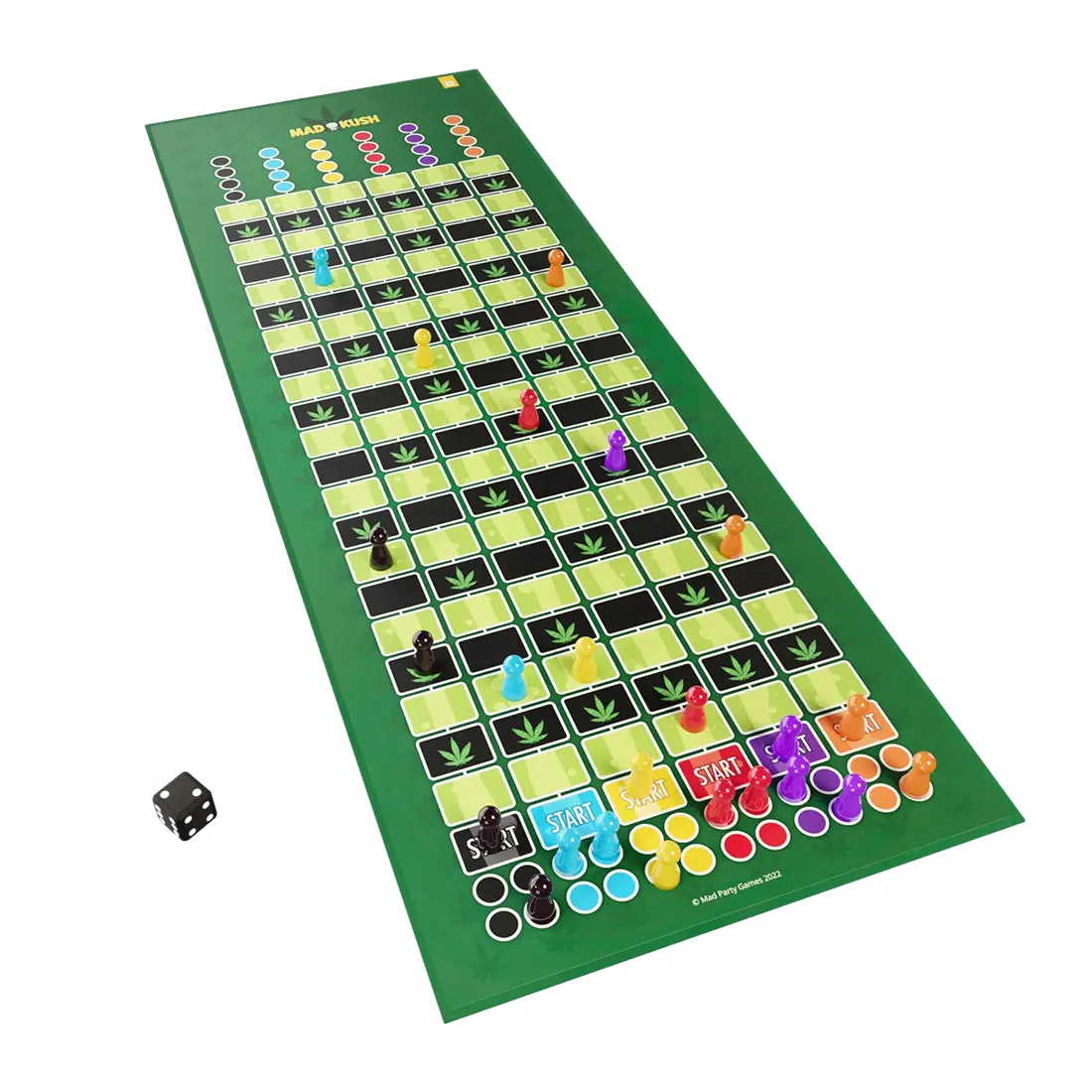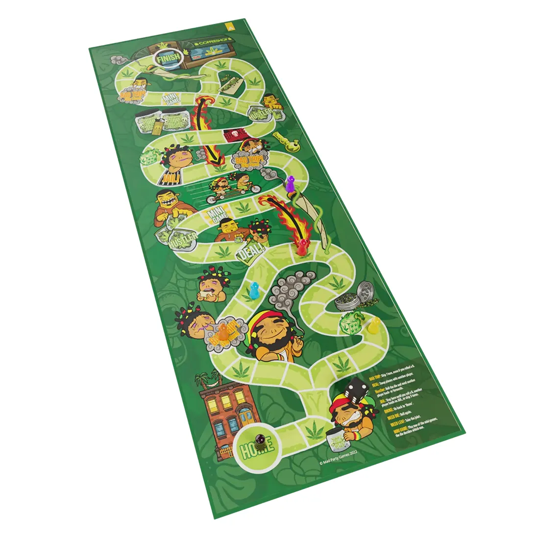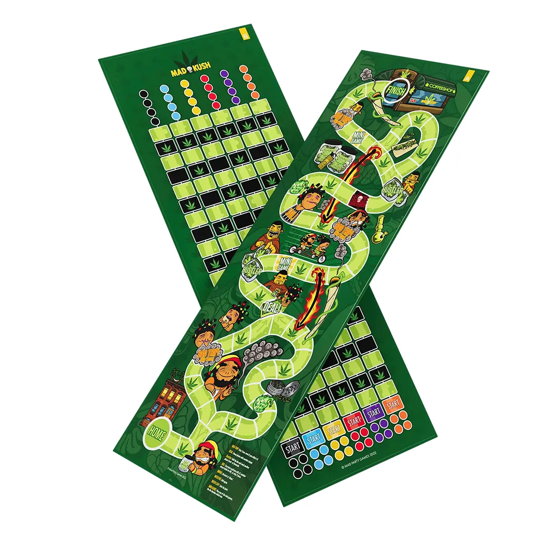 Gør dig klar til at opleve det ultimative cannabis spil med vennerne, nemlig med dette MadKush Weed Board Game! Dette cannabis spil byder på det ultimative to-i-én brætspil for stenere, der elsker at ryge og have det sjovt med vennerne samtidig! Med to forskellige sider af brættet, får du nemlig en innovativ og dynamisk spiloplevelse, der er perfekt til din næste rygeraften!Spil 1: Kom først til en Coffee Shop!På den ene side af brættet skal spillerne hurtigst muligt nå til en coffeeshop før deres venner, men fyldt med spændende overraskelser og udfordringer på vejen, der vil holde dig oppe på tæerne! Med seks underholdende minispil inkluderet, er du garanteret en festlig ryger aften i godt selskab!Spil 2: Hustle dig vej frem til sejren! På den anden side af brættet er det mere strategisk og konkurrencepræget, med målet om at få alle fire brikker i mål før dine rivaler. På vejen vil du støde på interessante stop som “Hustler”, der lader dig flytte en medspiller frem eller tilbage, samt “Weed Leaf”, som kræver at du tager et puf på vejen uanset hvor basket du er!Spillet inkludere naturligvis en grinder som bliver uundværlig, og med 24 brikker, en terning samt spilleregler inkluderet, har du alt, hvad du behøver for en sjov, skæv og underholdende spilaften med dine venner. God ryger og gamer!Produktdata