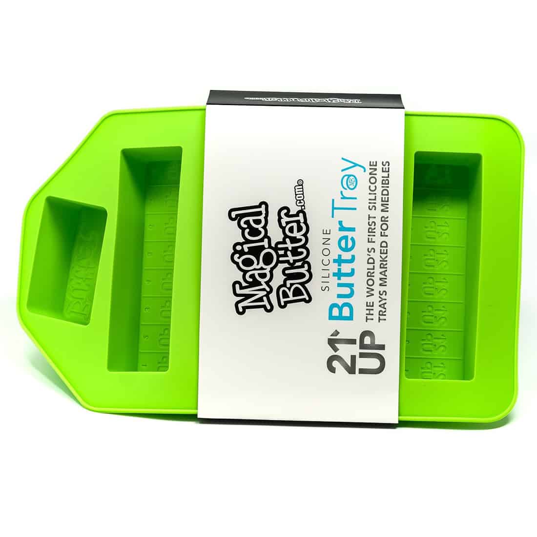 Fremstil dine egne smørklatter med stil, med disse 21UP Butter Trays fra MagicalButter. Disse smørforme er skabt med det formål at forbedre din madlavningsoplevelse, og samtidig tilføje et strejf af finesse til dine køkkenkreationer. Formene gør det nemt at dosere din cannabissmør korrekt, hvilket sikrer en ensartet oplevelse hver gang. 21UP Butter Trays er lavet af varmebestandig og fødevaresikker silikone, hvilket betyder, at de tåler både fryser, ovn og mikrobølgeovn. Med deres non-stick egenskaber er de nemme at rengøre og vedligeholde, og det sikrer også, at dit smør frigives nemt og hurtigt hver gang. De fleksible forme har tydelige markeringer, der gør det nemt at skære smørklatterne i den rigtige størrelse. 21UP Butter Trays en essentiel tilføjelse til enhver gourmetkok eller hjemmebager, der ønsker at tilføje et ekstra niveau til deres retter, så uanset om du er en erfaren cannabis edible connoisseur, eller bare en entusiastisk hjemmekok, er disse smørforme det perfekte redskab!