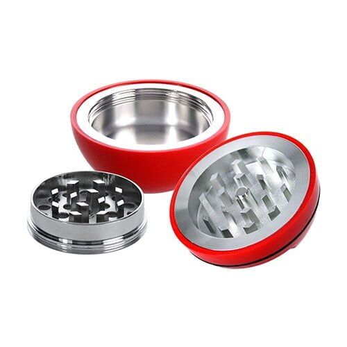 Denne grinder ser meget ond ud, og det er den også hvis du som plante havner imellem dens skarpe tænder. Dens runde form samt gode drejeflade, giver en perfekt friktion på grinderen, så den altid er nem at grinde med. Husk dog altid at holde den ren i siderne, da friktionen ellers forringes markarnt, en god måde at undgå rengøring så ofte, er ved at holde den helt vandret når man bruger den. Hvis du holde den lodret, kan der ryger plantemateriale ind imellem de to dele, og det skal man helst undgå. Grinderen har et ekstra rum i bunden, til opsamling af overskydende ryst, men der medfølger ikke en opsamlingsske, så vi anbefaler at tilkøbe en Ninja Star – Grinder Tool som erstatning.