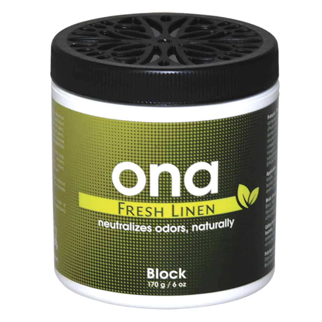 ONA Block en en simpel og effektiv løsning til neutralisering af dårlig lugt. Disse blokke fra ONA, fjerner lugte hurtigt og effektivt. Denne Fresh Linen variant har en friskfriskende og neutralt duft, med en svag snært af nyvasket vasketøj. Så snart låget åbnes bekæmper ONA blokken dårligt lugt i op til 30 dage. I modsætning til konventionelle duftneutraliseringsprodukter, skjuler ONA blokke ikke dårlig lugt ved at overdøve med anden duft, de snarre bekæmper dem på molekylært niveau. ONA blokken er lavet af organiske æteriske olier, og er derfor sikker til anvendelse omkring børn, dyr og mad. De er meget nemme at anvende, Åben låget, bryd forseglingen, lav huller via det unikt designede låg, og  sæt den op på den ønskede placering, og oplev de forfriskende fordele ved et velduftende indeklima. Er særligt velegnet til ONA Air Filter, hvor blokkene passer til og til ONA Breeze, som kan monteres ovenpå beholderen for en forøget effekt.