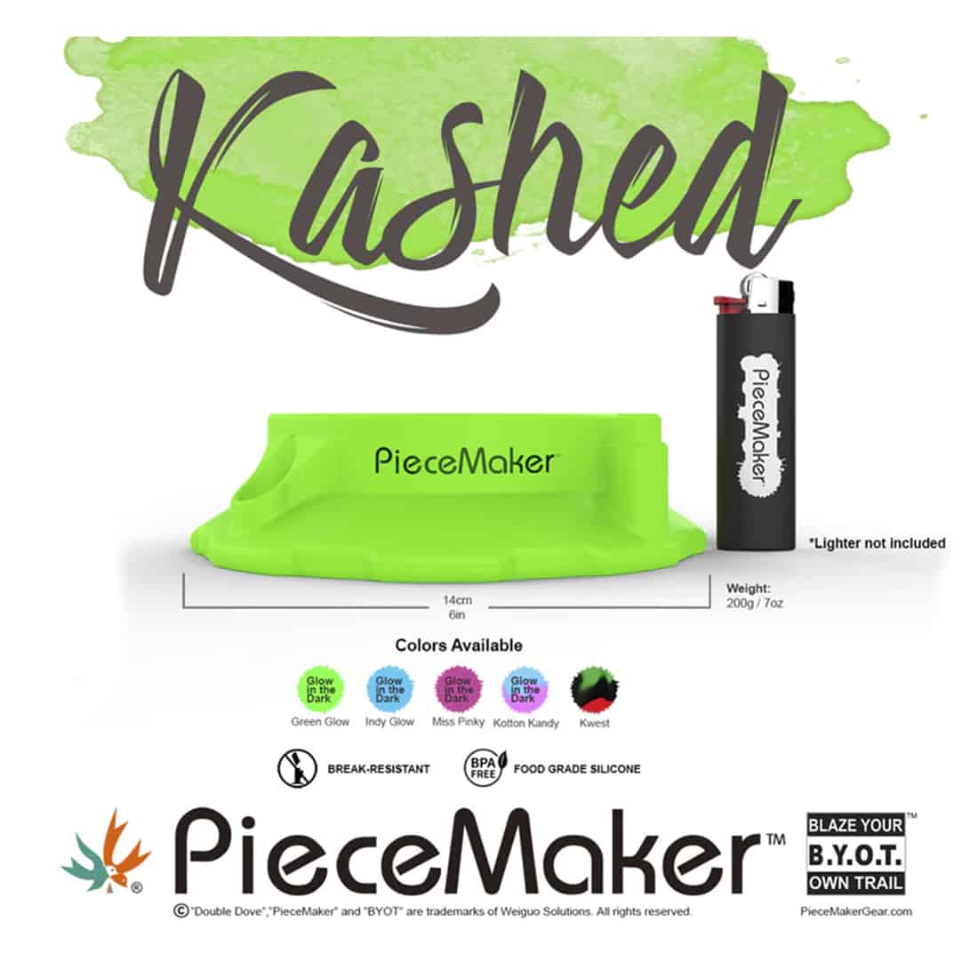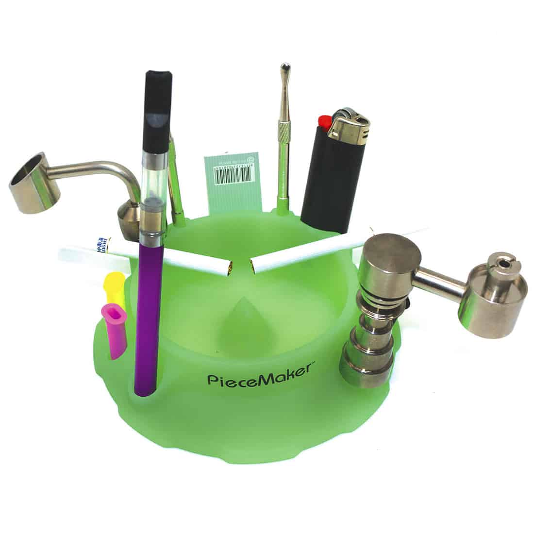 KASHED fra PieceMaker er et silikone askebæger fremstillet i USA, og er er af rigtig god kvalitet, der er fremstillet af førsteklasses silikone, og har et praktisk design der er til gavn for alle rygere, uanset om de ryger joints eller dabber. Den medfølgende skraber gør rengøringen til en leg, og den store opbevaringsplads er ideel til at opbevare dine rygeartikler som lightere, dab-redskaber, filtertips og rullepapir. Piecemaker KASHED er det eneste værktøj som du har brug for, til at holde dit dabbing-udstyr sikkert og let tilgængelig, samtidig med at du hurtigt kan aske direkte deri. Den er nem at bruge og rengøre, og tåler desuden opvaskemaskine, og har naturligvis indhak på siderne der giver plads til at cigaretter eller joints kan hvile. Så er du en dabber der har brug for smart opbevaring til dit grej? Og er på udkig efter et askebæger der kan holde i mange mange år fremover? Så er det lige præcis denne Kashed Mamba tray fra Piecemaker du skal købe!